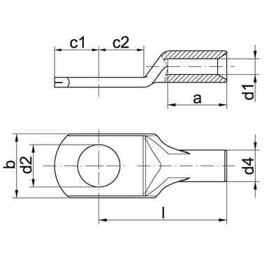 Fût chanfreiné pour faciliter l'insertion du câble. Sertissage par poinçonnage avec outils manuels, hydrauliques ou électrohydraulique. Sections disponibles de 1,5 à 95mm².