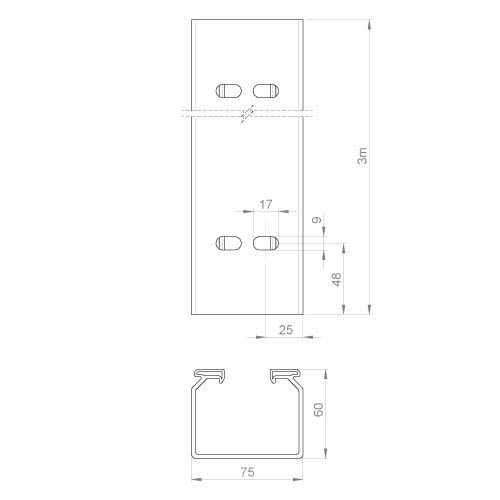 Unex - Chemin de câbles fond plein gris RAL7035 60x75 U23X - 66091