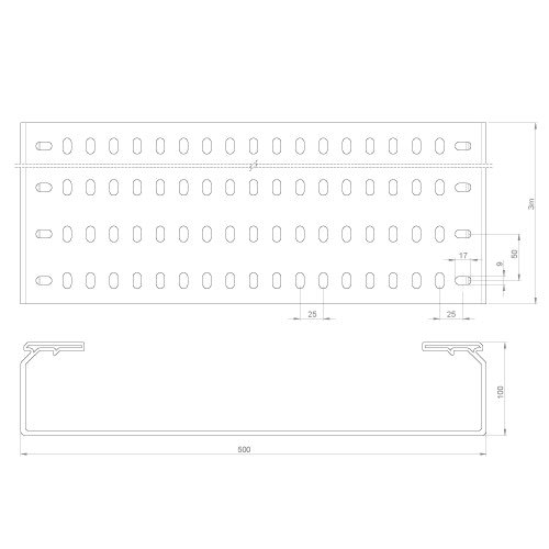 Unex - Chemin de câbles fond perforé gris RAL7035 100x500 U23X - 66520