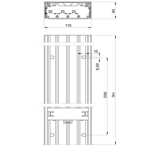Goulotte IK10 (3m) 40x110 blanc RAL9010 U23X. Goulotte à couvercle extérieur, livrée avec son couvercle, 2 éclisses, 6 agrafes. Goulotte de distribution tous usages, y compris le cheminement des câbles des IRVE ou des colonnes électriques.