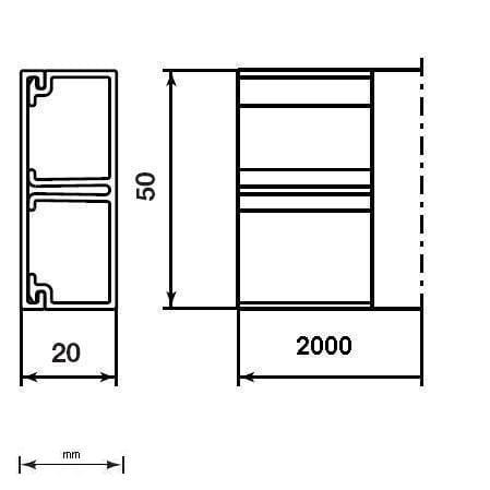Unex - Moulure avec 1 cloison blanc RAL9010 20x50 U23X - 78095-2