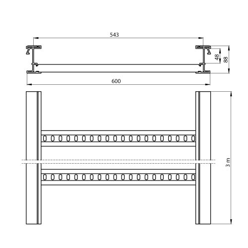 Système robuste conçu pour travailler à pleine charge avec une distance entre supports de 2 à 3 m.