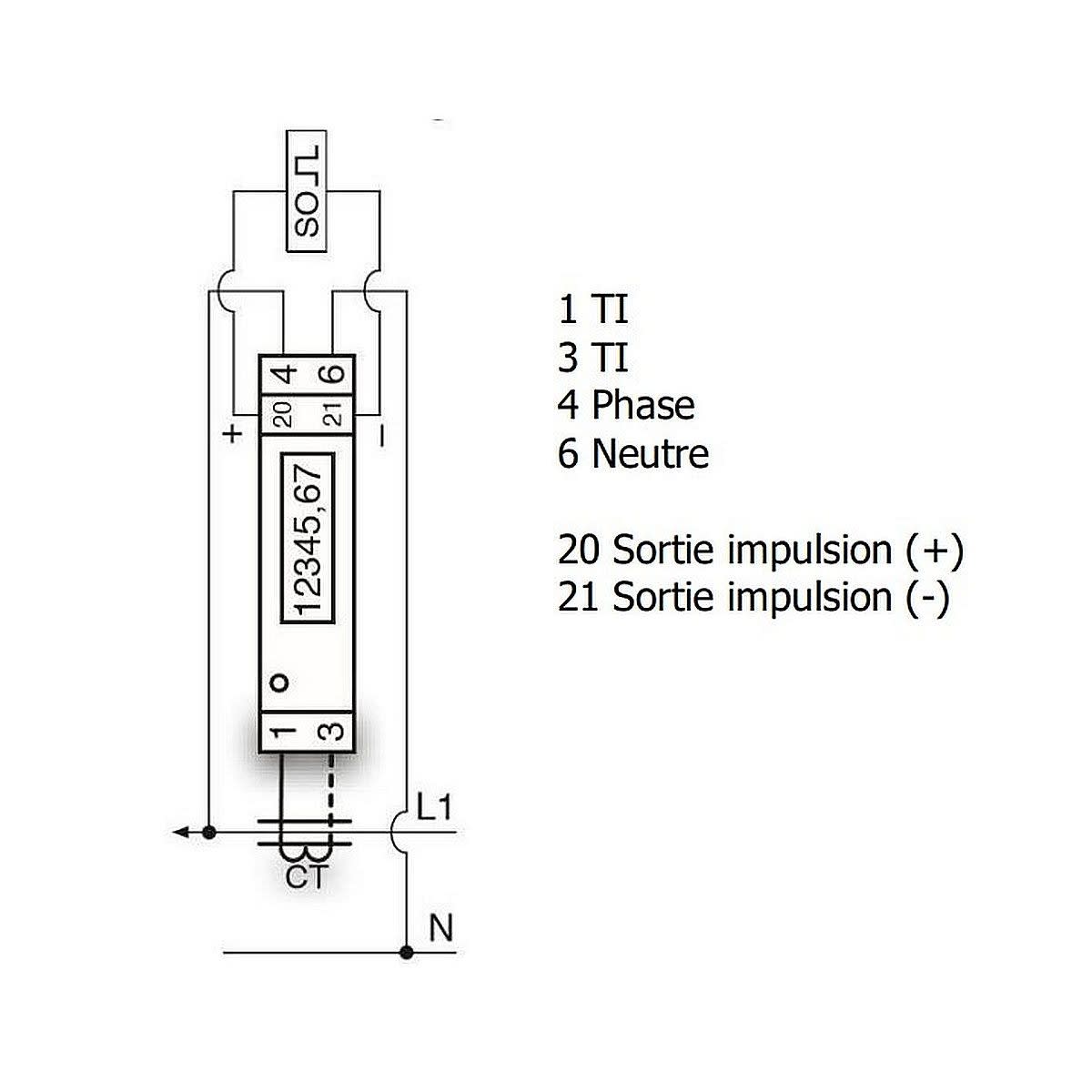 Compteur électrique modulaire - Monophasé 100 A avec Transformateur d'Intensité - Simple tarif - Sortie d'impulsion - Affichage LCD