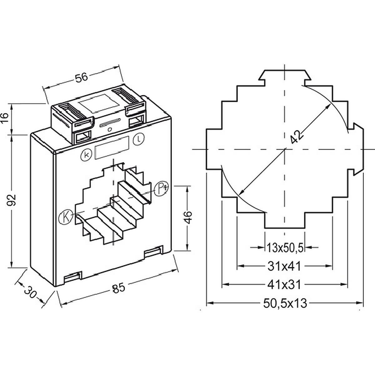 Utilisé avec des compteurs électriques à mesure indirect, ce transformateur de courant est traversant avec un diamètre de passage de 42 mm. Courant primaire 500 A et courant secondaire 5 A, il est de classe 1 et a une puissance de 5 VA.