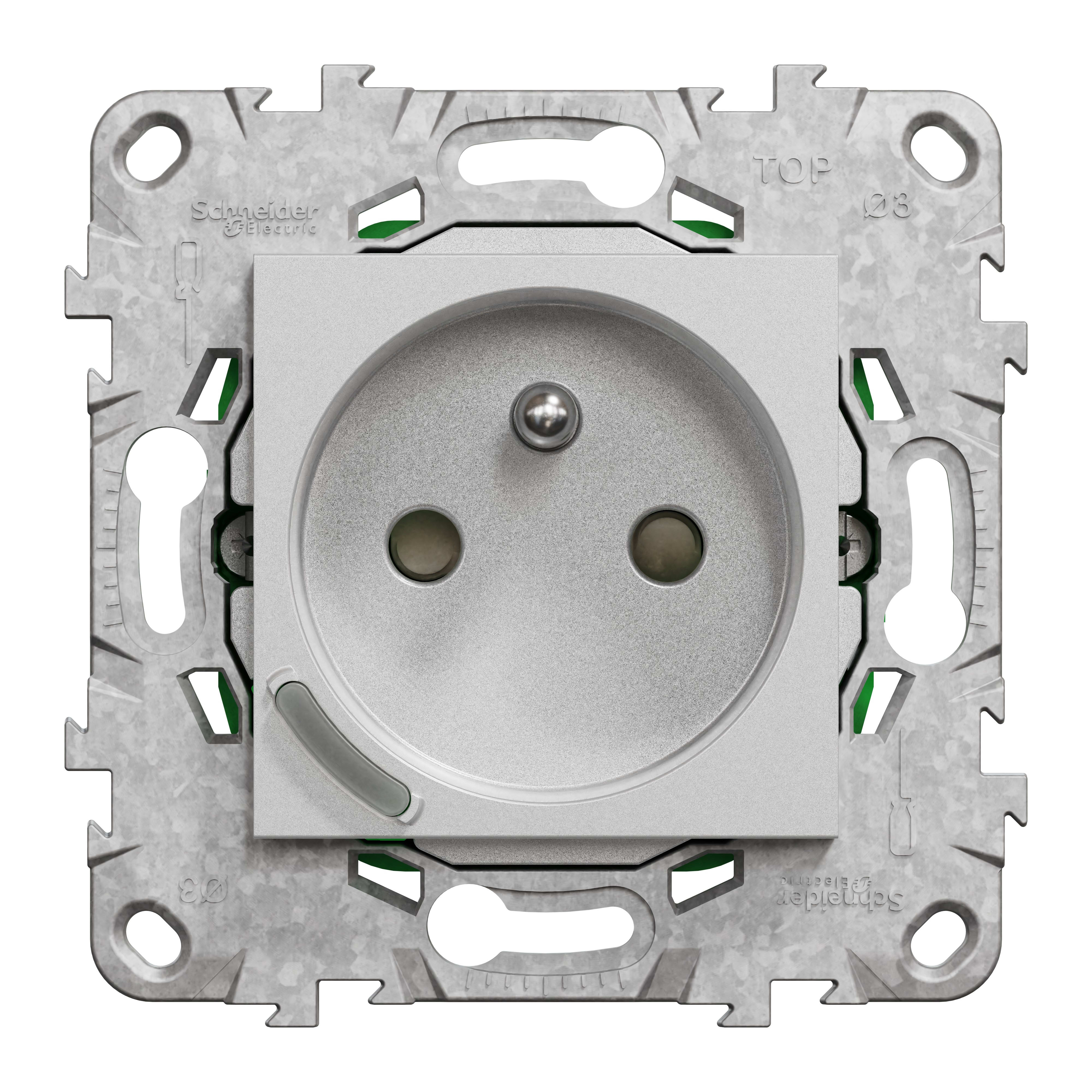 Schneider Electric - Wiser Unica - Prise 2P+T connectée - 16A - zigbee - Aluminium - NU555930