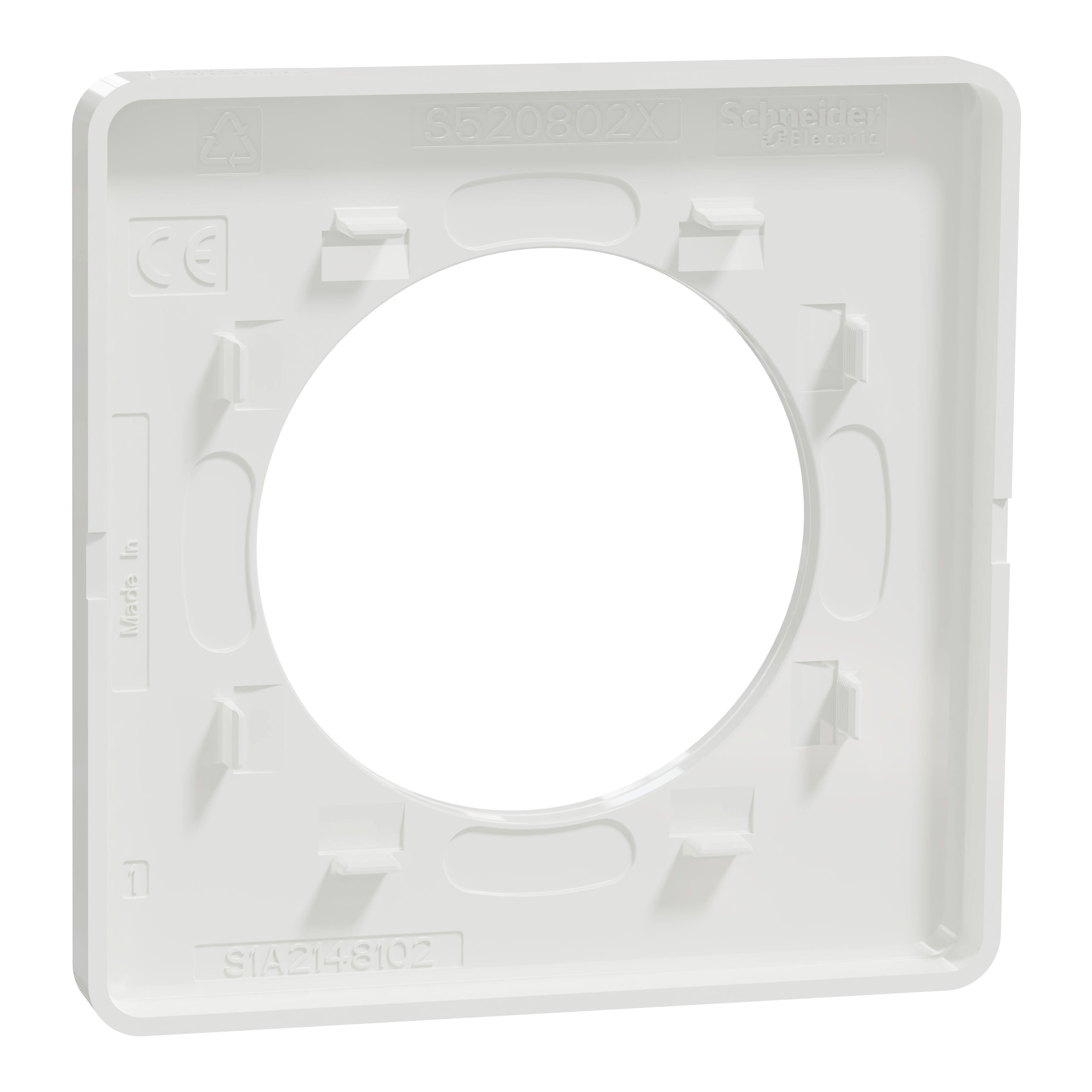 Le cadre de protection Odace S520802L de Schneider Electric est de couleur blanc et bronze brossé métallique. Son boîtier de montage adapté peut être encastré dans la surface du mur. Il répond à la norme 2006/95/EEC, EN 60669-1, NBN C 61-112-1, NF C 61-314, UNE 20315-1-1. Le cadre de protection est en PC (polycarbonate), aluminium, ce qui le rend aussi résistant que possible. Le mode de fixation de cet appareil est par clips. De plus, il est respectueux de l'environnement, avec une résistance aux UV, de l'acétone, de l'alcool, de l'ammoniaque, de l'eau de Javel, du savon liquide, de l'huile, de l'essence, du liquide de nettoyage des fenêtres. Ce cadre de couverture a une finition de surface brillante et brossée. Il est sans halogène. Cet appareil est qualifié de produit écologique de qualité supérieure, avec une utilisation minimale de substances dangereuses.