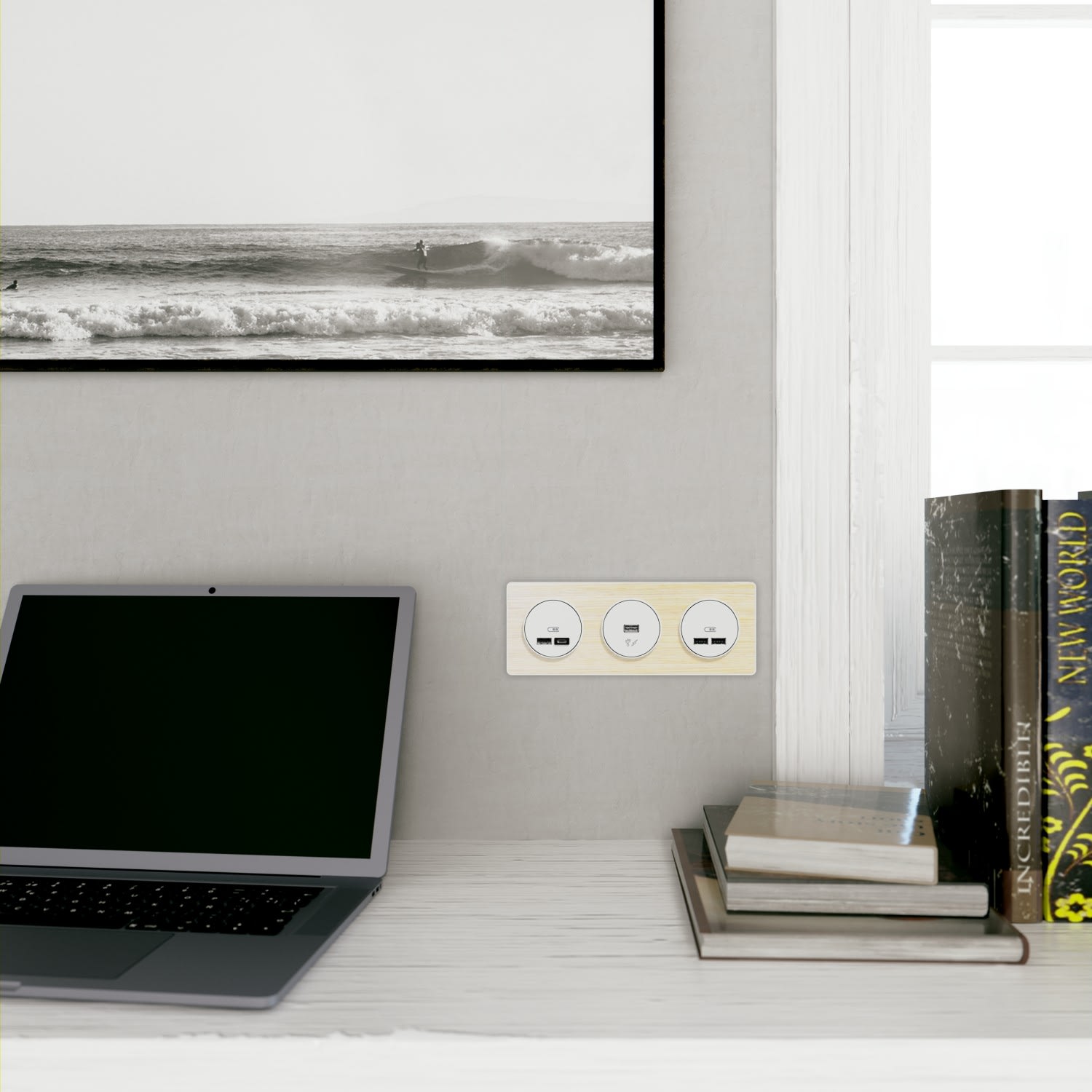 Schneider Electric - Odace Touch - plaque 3 postes horiz/vert 71mm bois nordique avec liseré blanc - S520806M