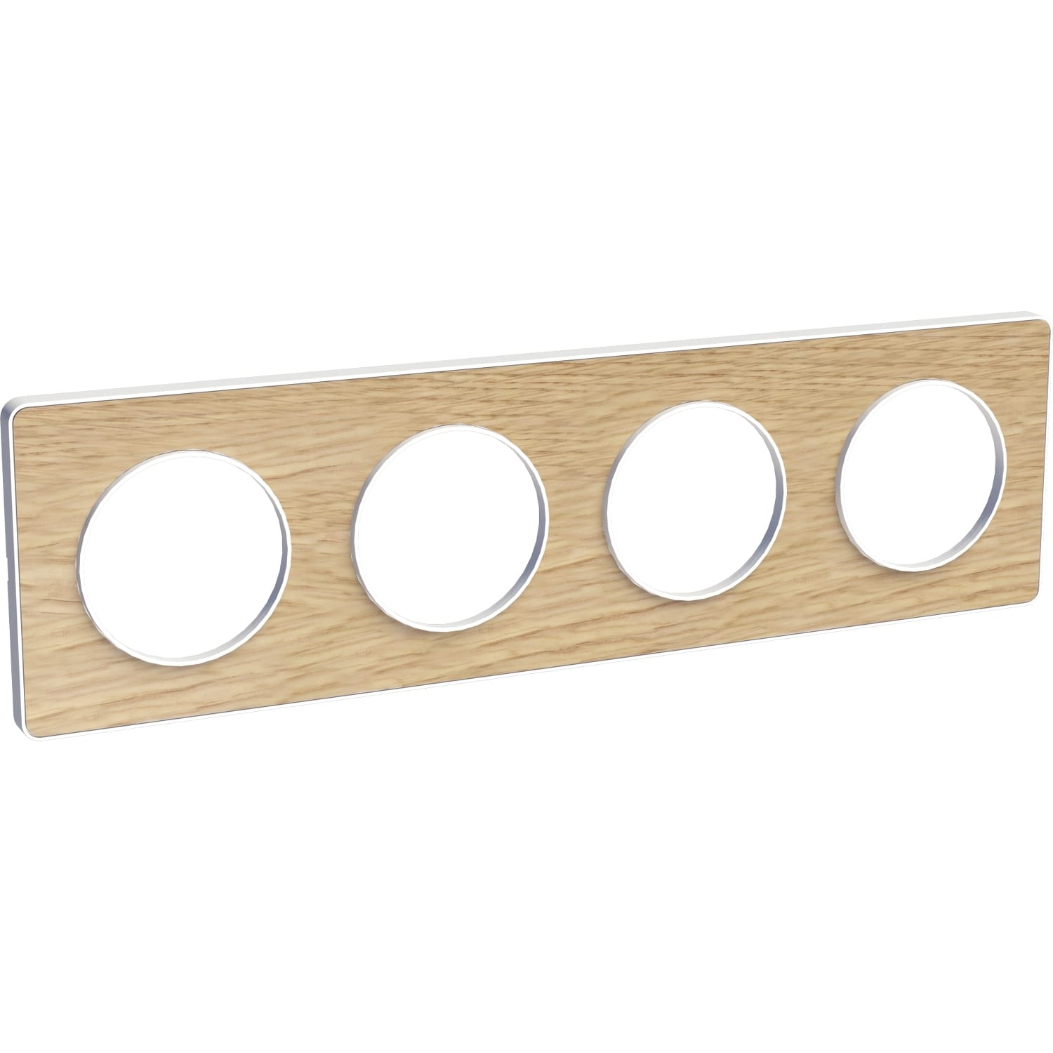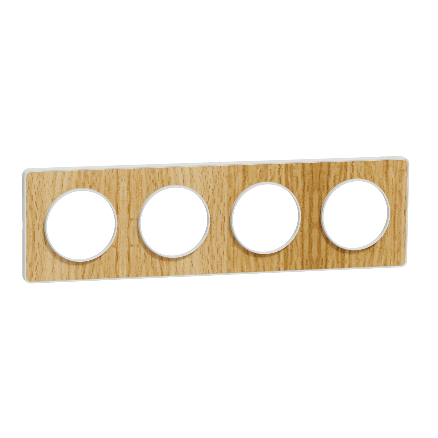 Odace Touch - plaque - bois naturel avec liseré blanc - 4 postes horizontal 71mm - 4 postes vertical 71mm - H85mm - L298mm - P10mm - IK04 - IP21 D - sans halogène
