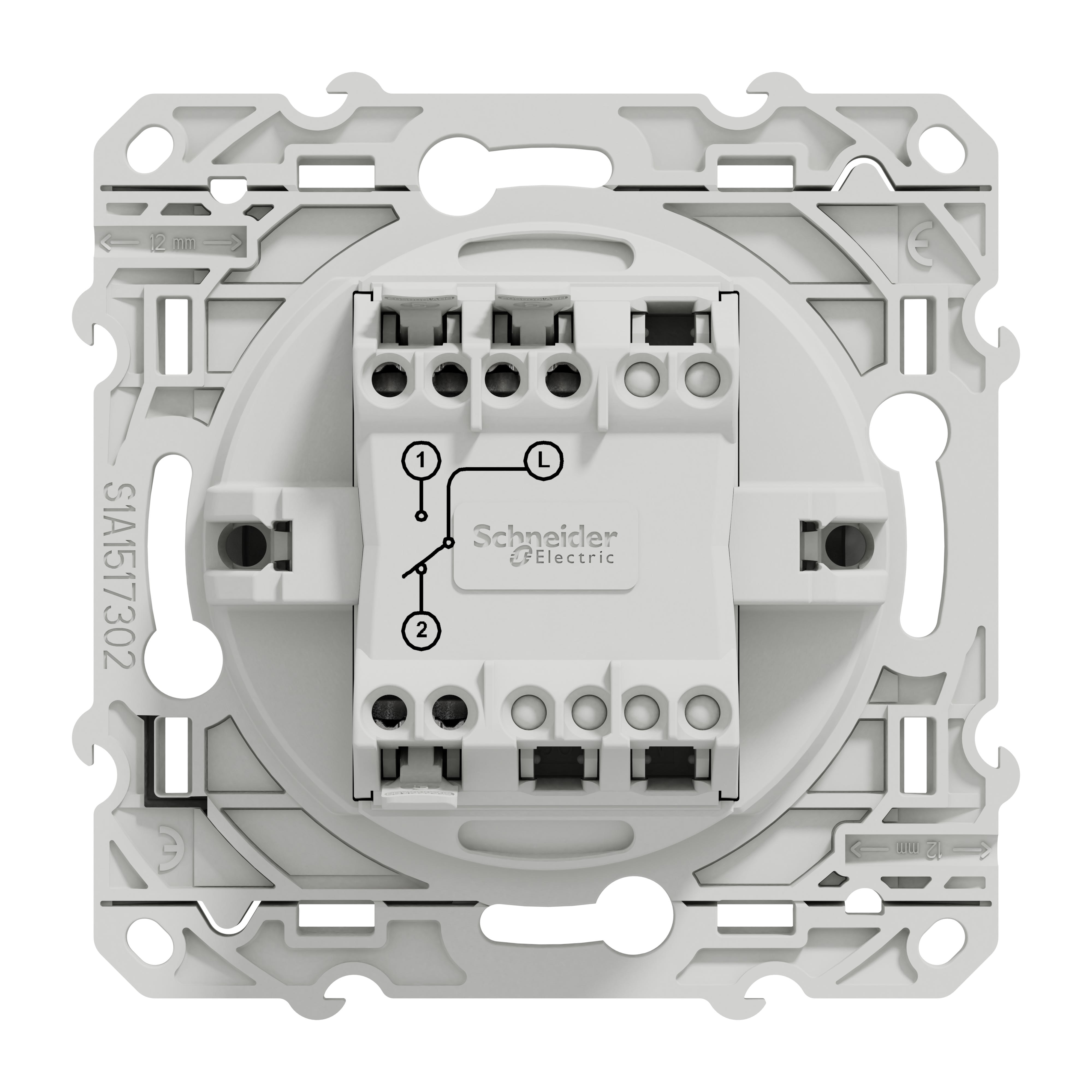 Commande d'éclairage simple, cet interrupteur va-et-vient Odace de Schneider Electric est aussi un réel objet de décoration dans la maison Sa couleur aluminium très tendance convient tout à fait aux intérieurs contemporains alliant sobriété et esthétisme Pour toutes les pièces et pour toute la famille, il résiste aux chocs pour une meilleure longévité Son design unique (mariage exquis du cercle et du carré) s'adapte à tous les intérieurs raffinés : il sera sublimé par une plaque de finition design de la même gamme Entre sécurité et confort quotidien, cet interrupteur est facile à installer (fixation simple par vis dans le câblage, sans nécessité de modification) Il dispose de 3 bornes sans vis et d'un raccord d'alimentation interne Cet interrupteur marche/arrêt alu est doté d'un courant assigné d'emploi de 10 A - 250 V CA 50 Hz