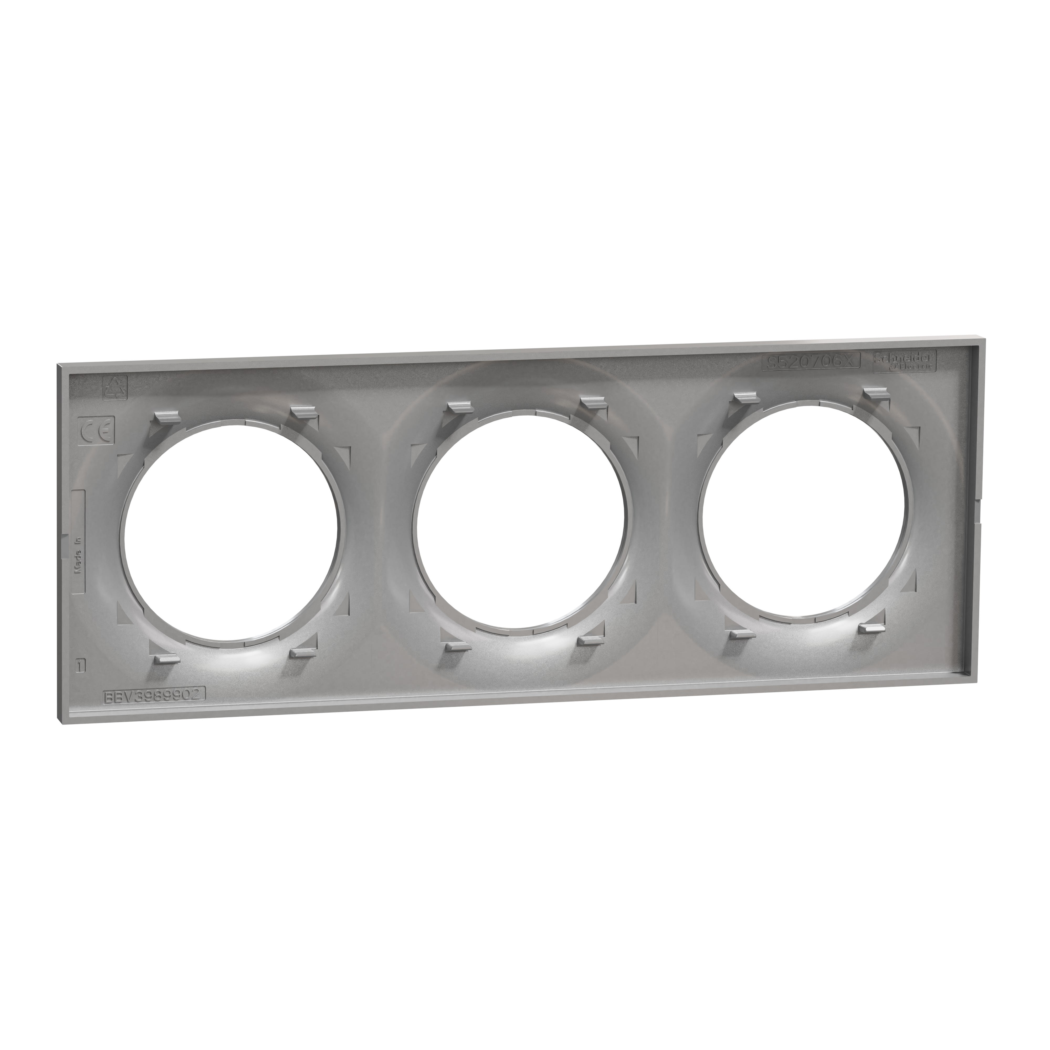 Schneider Electric - Odace Styl - plaque 3 postes horizontaux ou verticaux entraxe 71mm aluminium - S520706E