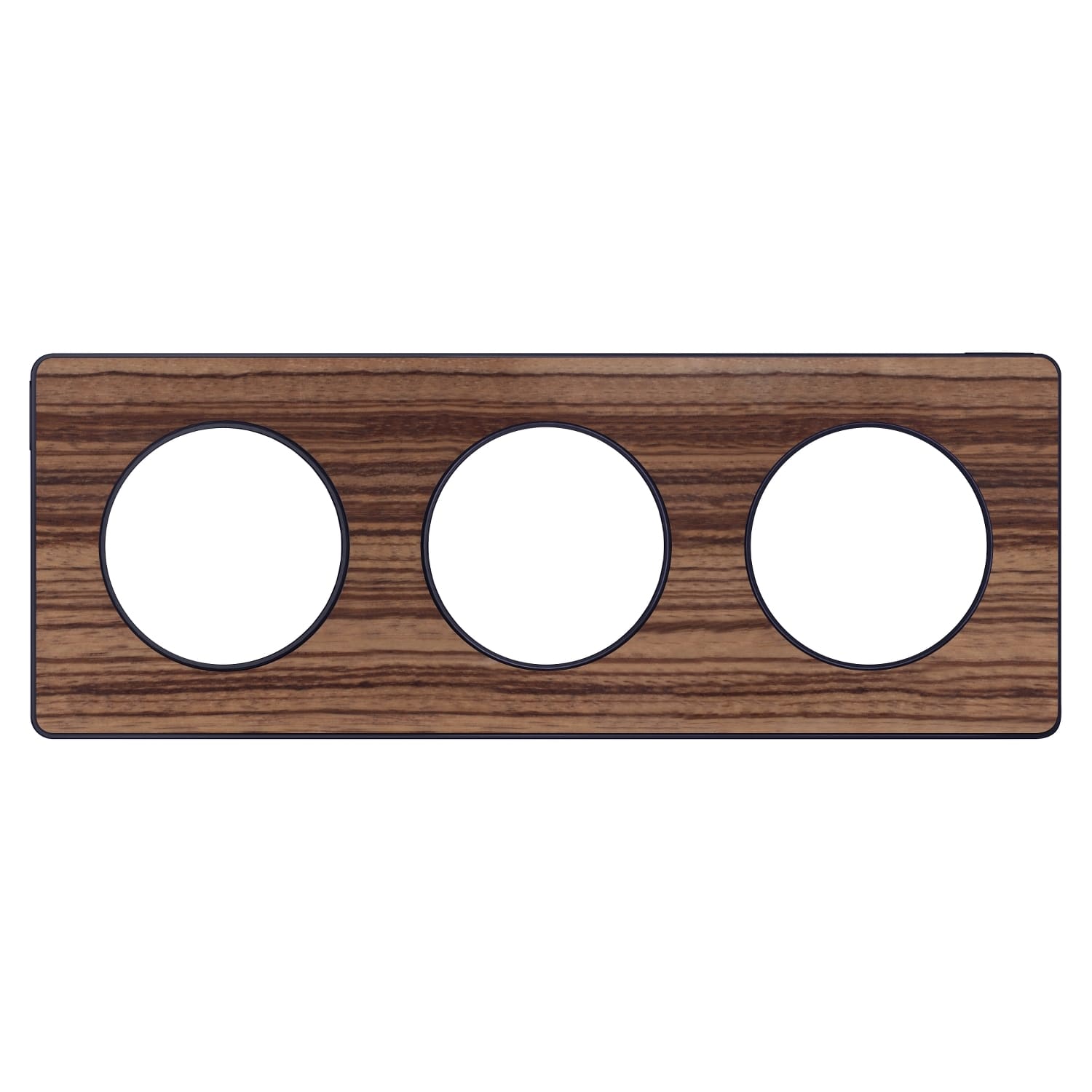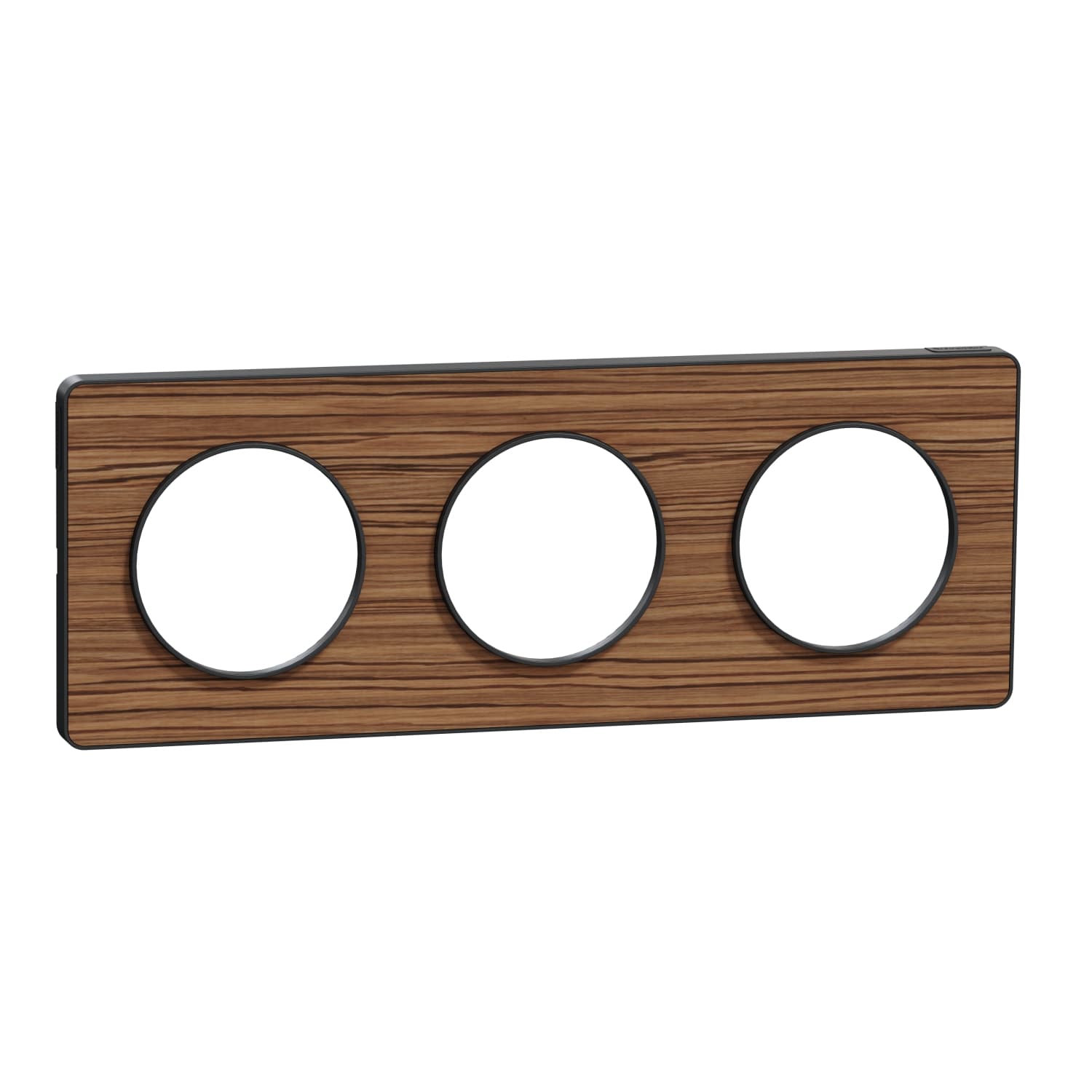 Schneider Electric - Odace Touch - plaque 3 postes horiz/ver 71mm bois zebrano avec liseré anthracite - S540806P4