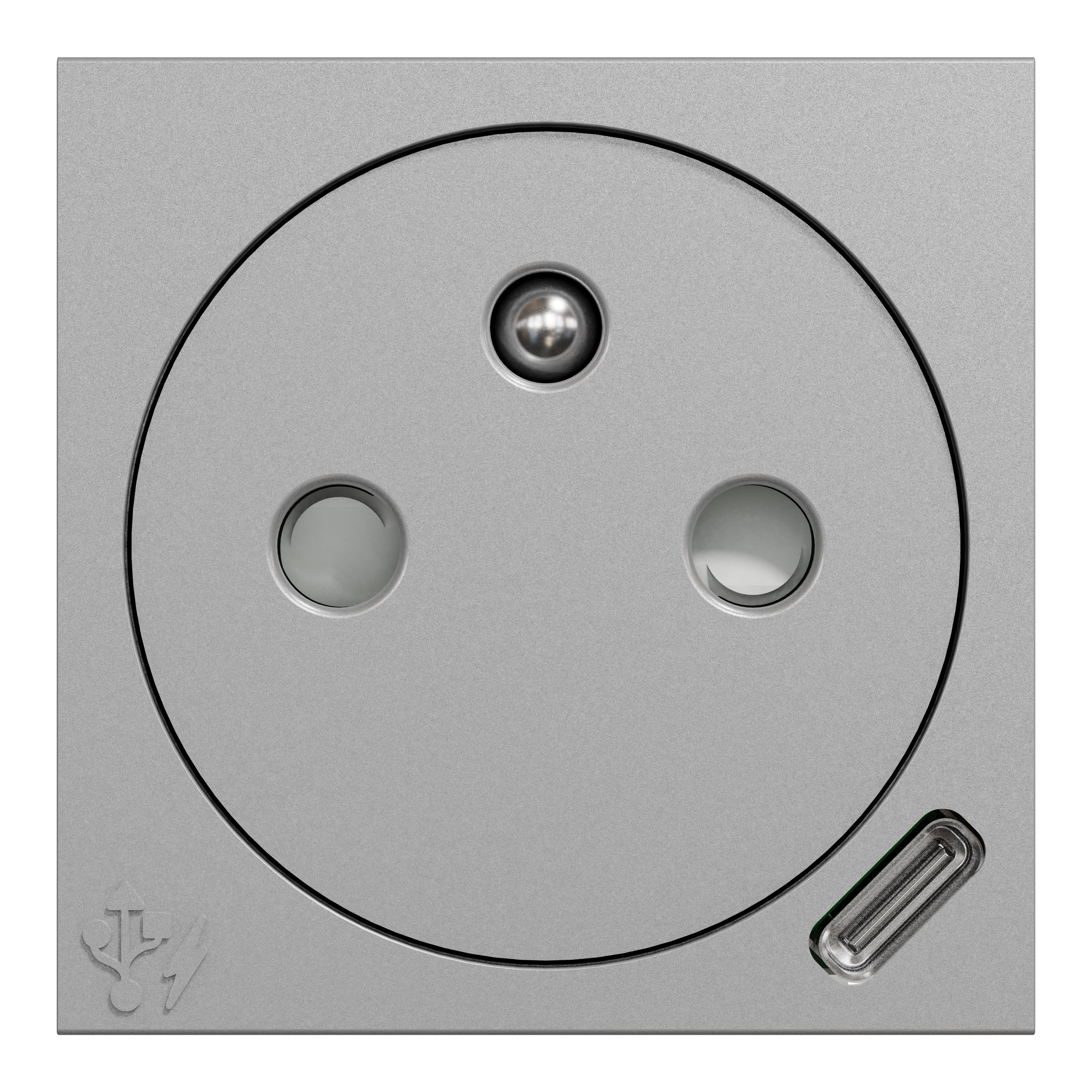 Schneider Electric - Unica - prise 2P+T affl FR + USB C 10,5W - 90° - rap - 2 mod - Alu - méca seul - NU301530