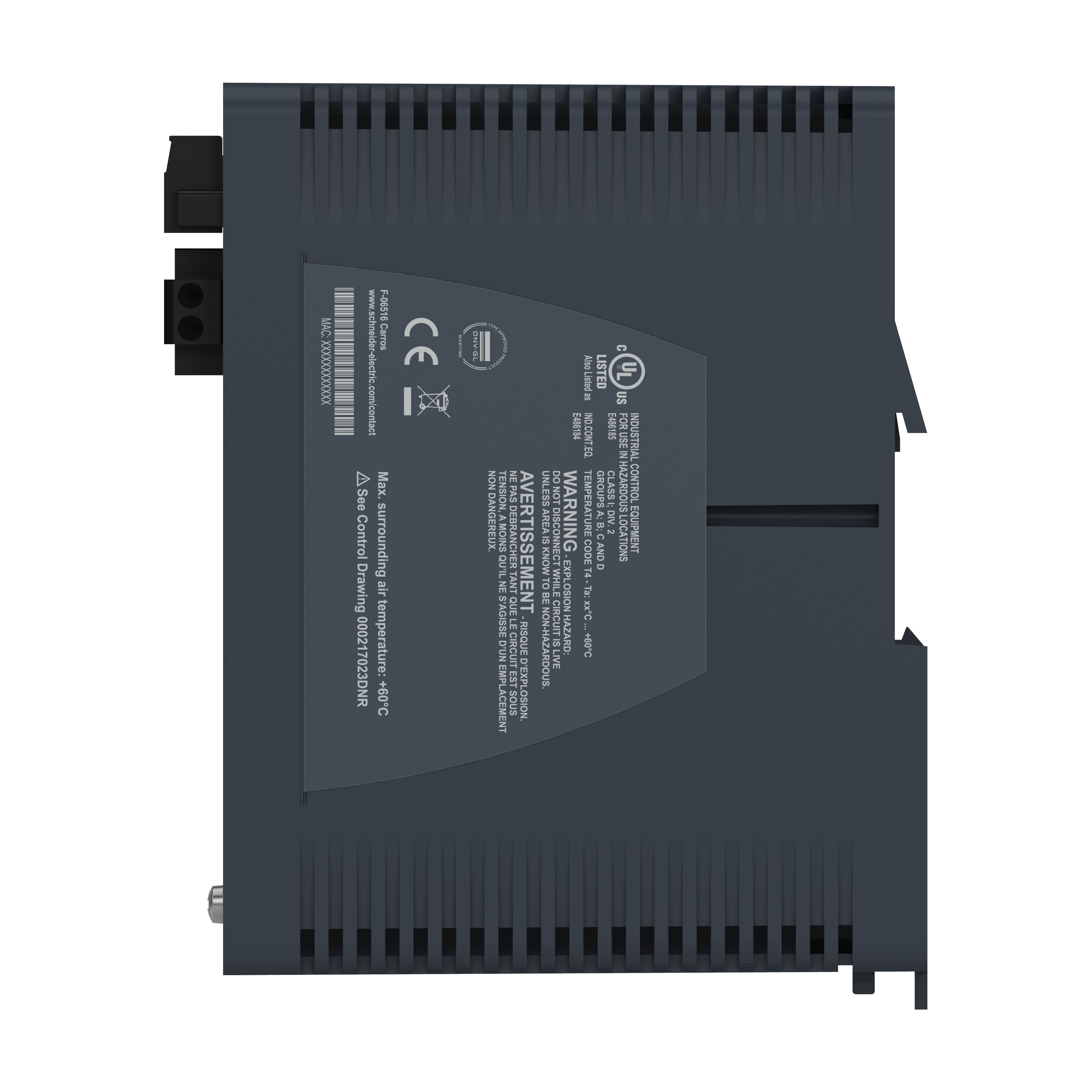 Ce contrôleur fait partie de la gamme Modicon Networking, une offre de contrôleurs gérés selon Modicon. Il offre une connectivité simple pour plusieurs équipements Ethernet. Il est conçu pour être monté sur un rail DIN symétrique de 35 mm. Il permet aussi une gestion de réseau, une cybersécurité améliorée et des fonctionnalités de commutation plus avancées. La gamme Modicon Networking vous offre un moyen intelligent et flexible d'intégrer des solutions Ethernet à votre exploitation, des équipements au réseau de contrôle et réseau d'entreprise. Il est certifié CE, UL, RCM, EAC, UKCA, DNV et est conforme aux normes UL 61010, EN/IEC 61131 et EN/IEC 62368-1. Ce commutateur est fourni avec le protocole Ethernet TCP/IP. Modicon offre des performances et une évolutivité pour de nombreuses applications industrielles, jusqu'aux machines multiaxes hautes performances et une haute disponibilité des process redondants.