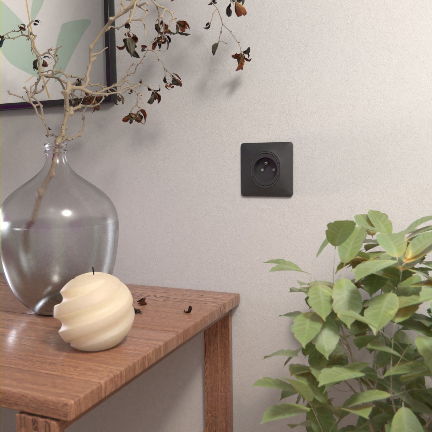 Cette prise de courant à puits 16A, avec terre au standard français, permet d'alimenter tout type d'appareil électrique. Elle s'installe dans une boîte d'encastrement en simple poste ou multipostes 57 ou 71mm. Son design contemporain, sa couleur anthracite et sa signature unique avec le doigt oblong répondra à vos besoins d'une intégration esthétique parfaite et discrète.