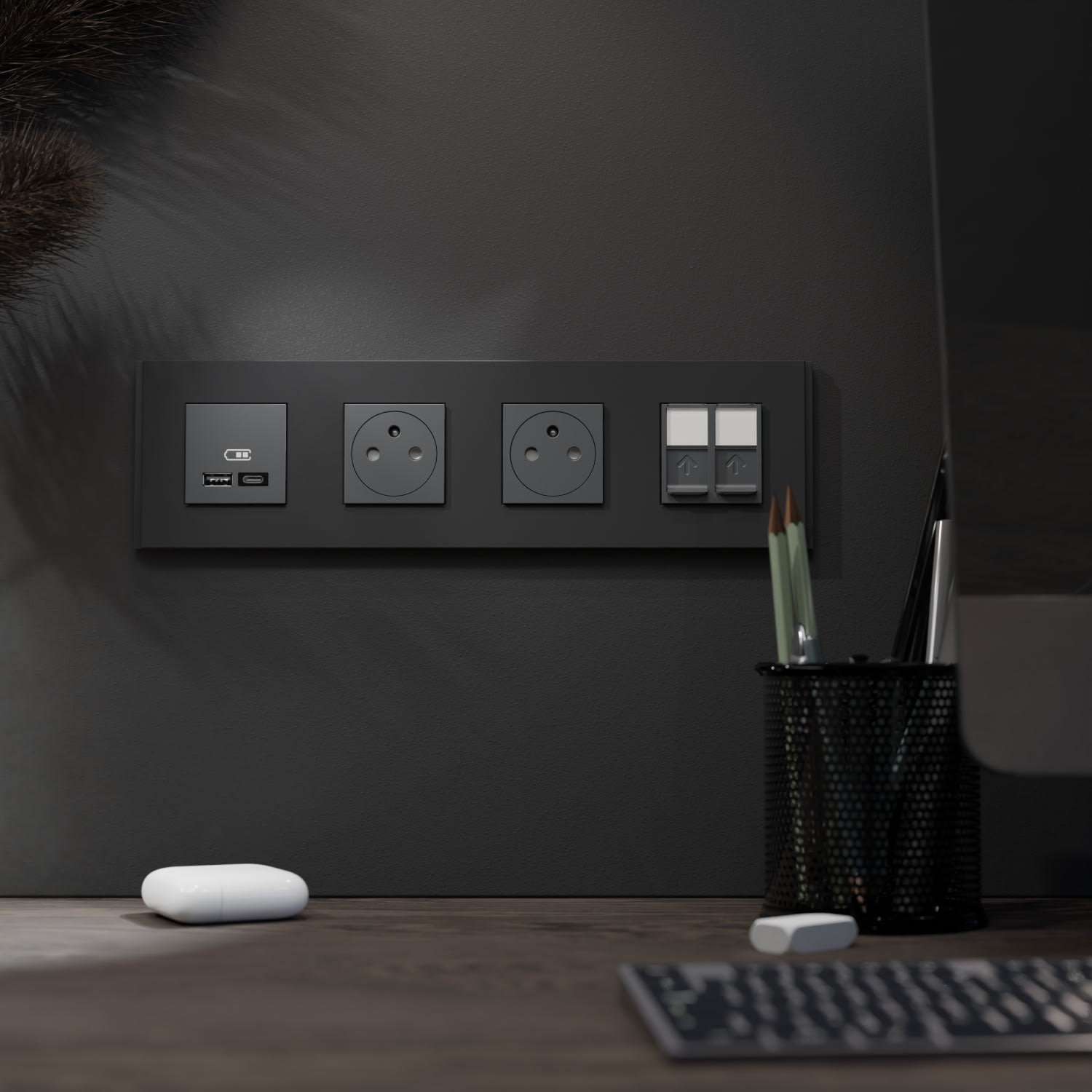 Cette plaque de finition haut de gamme 4 postes Unica Déco Signature aux lignes géométriques épurées se pare de matière et texture pour s'allier parfaitement à n'importe quel mur et donner du caractère à votre espace.