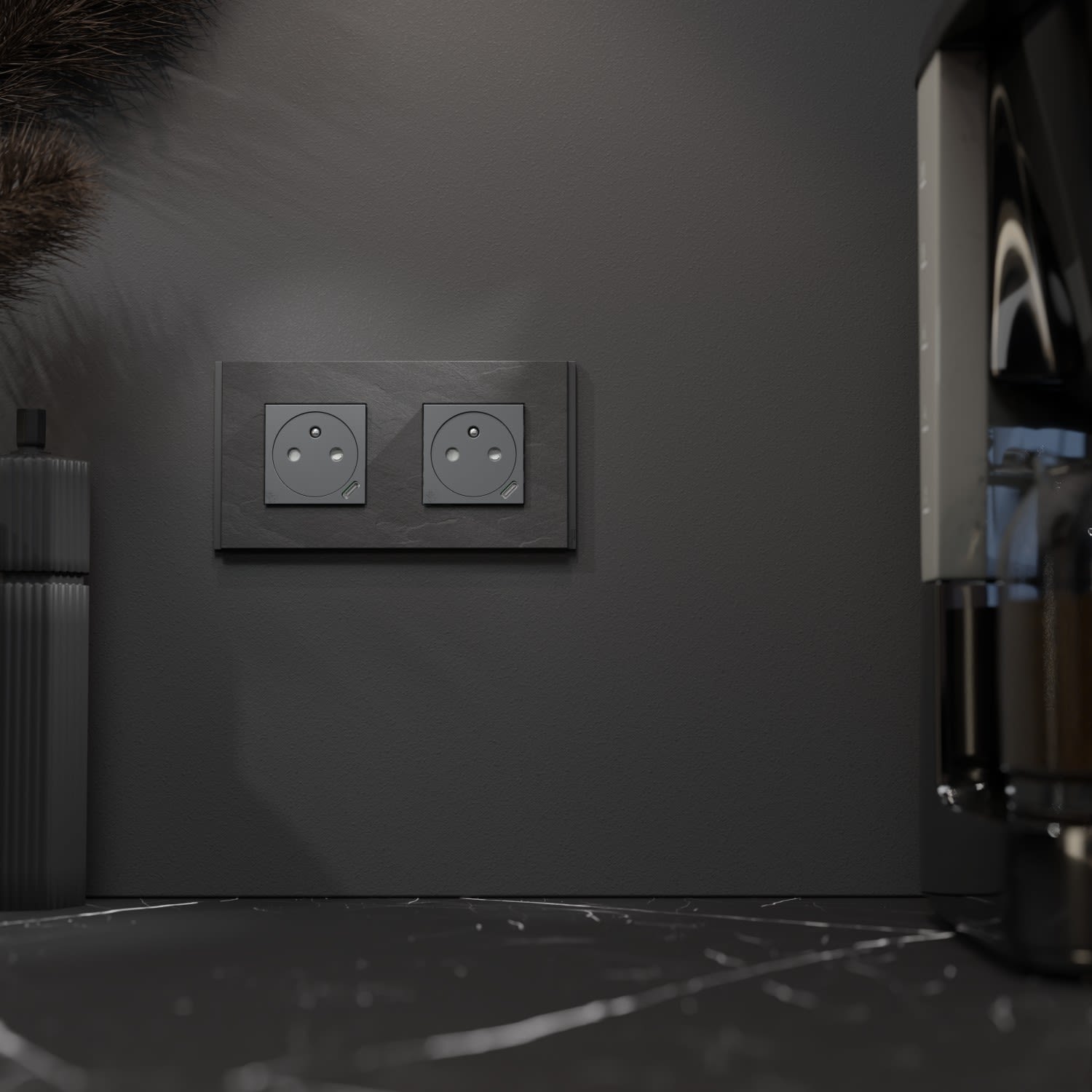 Cette plaque de finition haut de gamme 2 postes Unica Déco Signature aux lignes géométriques épurées se pare de matière et texture pour s'allier parfaitement à n'importe quel mur et donner du caractère à votre espace.