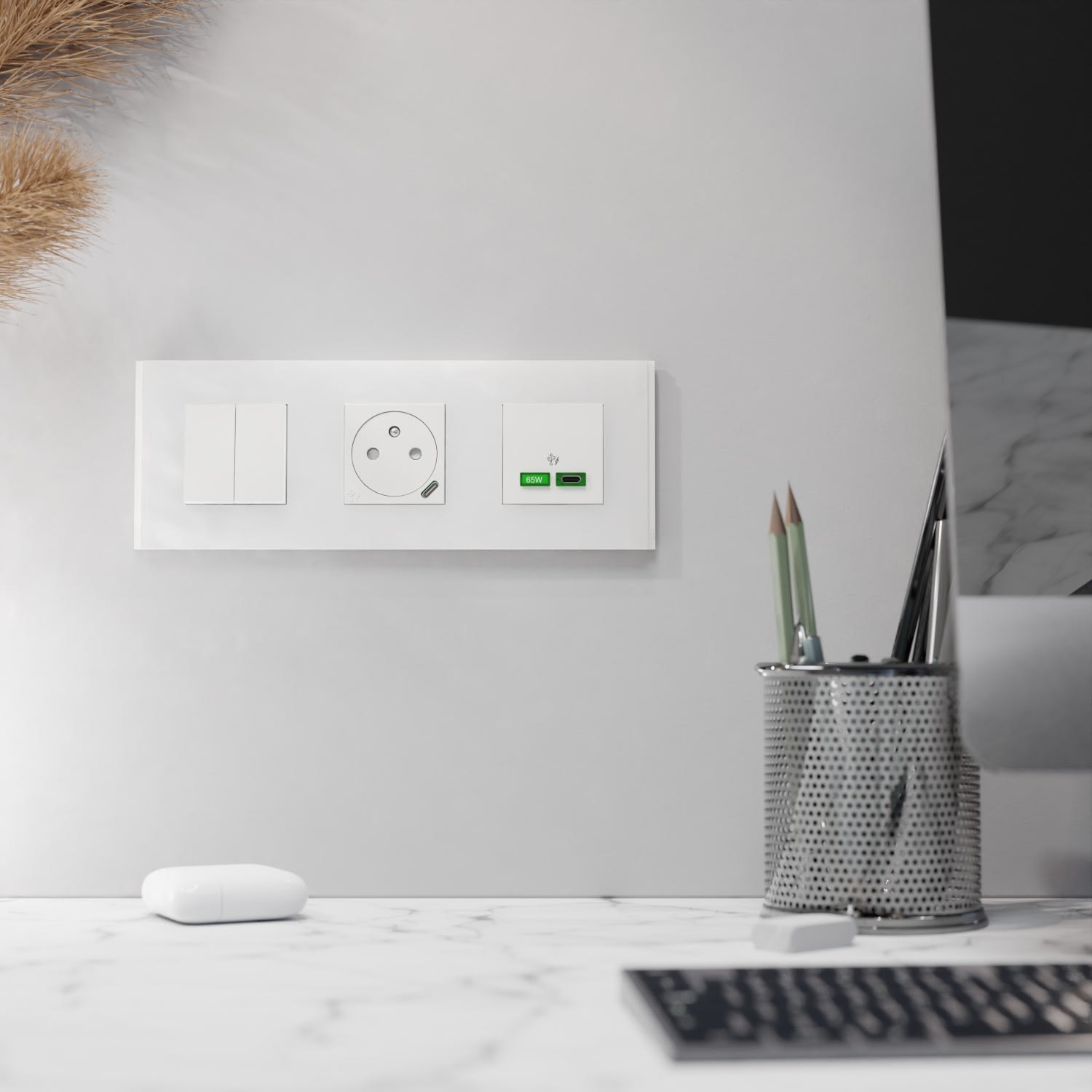 Cette plaque de finition haut de gamme 3 postes Unica Déco Signature aux lignes géométriques épurées se pare de matière et texture pour s'allier parfaitement à n'importe quel mur et donner du caractère à votre espace.