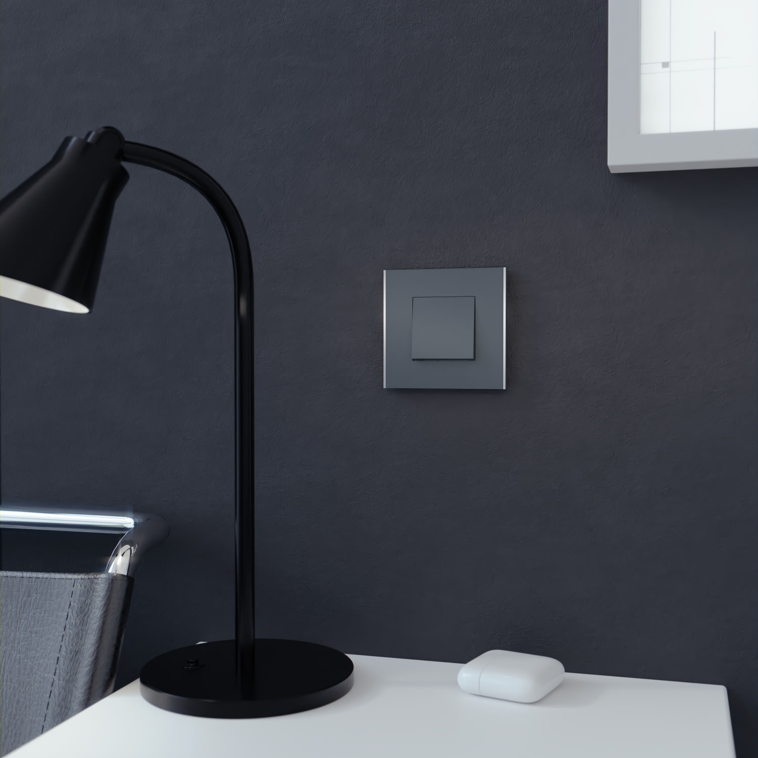 NU600243 se compose d'une plaque 1 poste de couleur anthracite (RAL7021) avec deux liserés argents de part et d'autre. Il sera à associer et à clipser sur un support de fixation (commençant par NU700) qui maintient le mécanisme ou la fonction Unica (prise, interrupteur, ...).