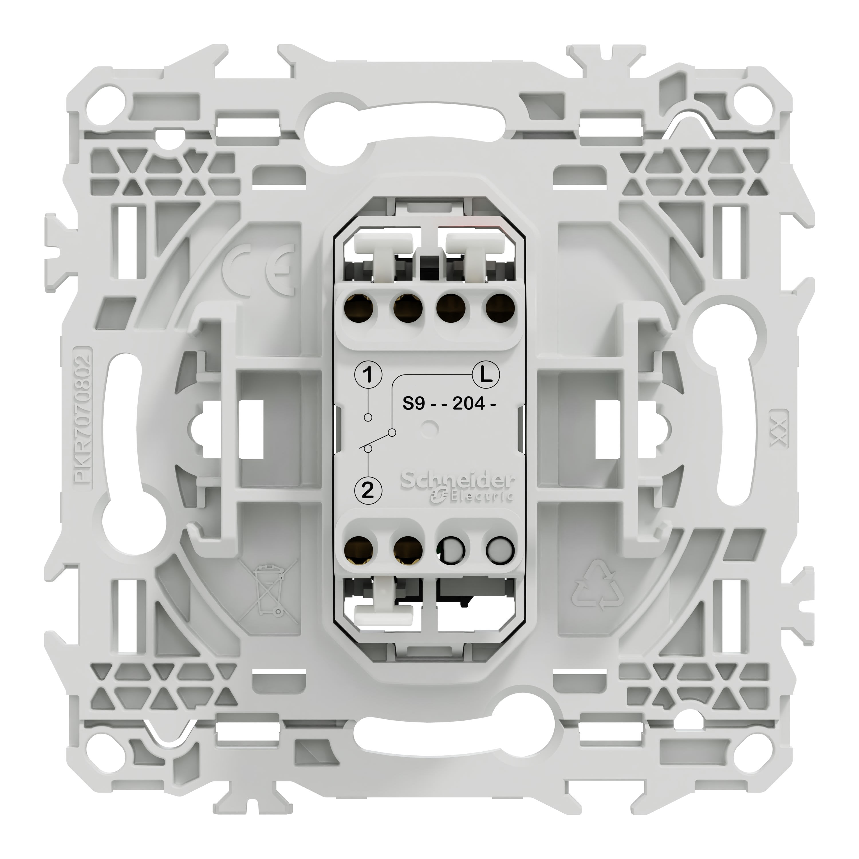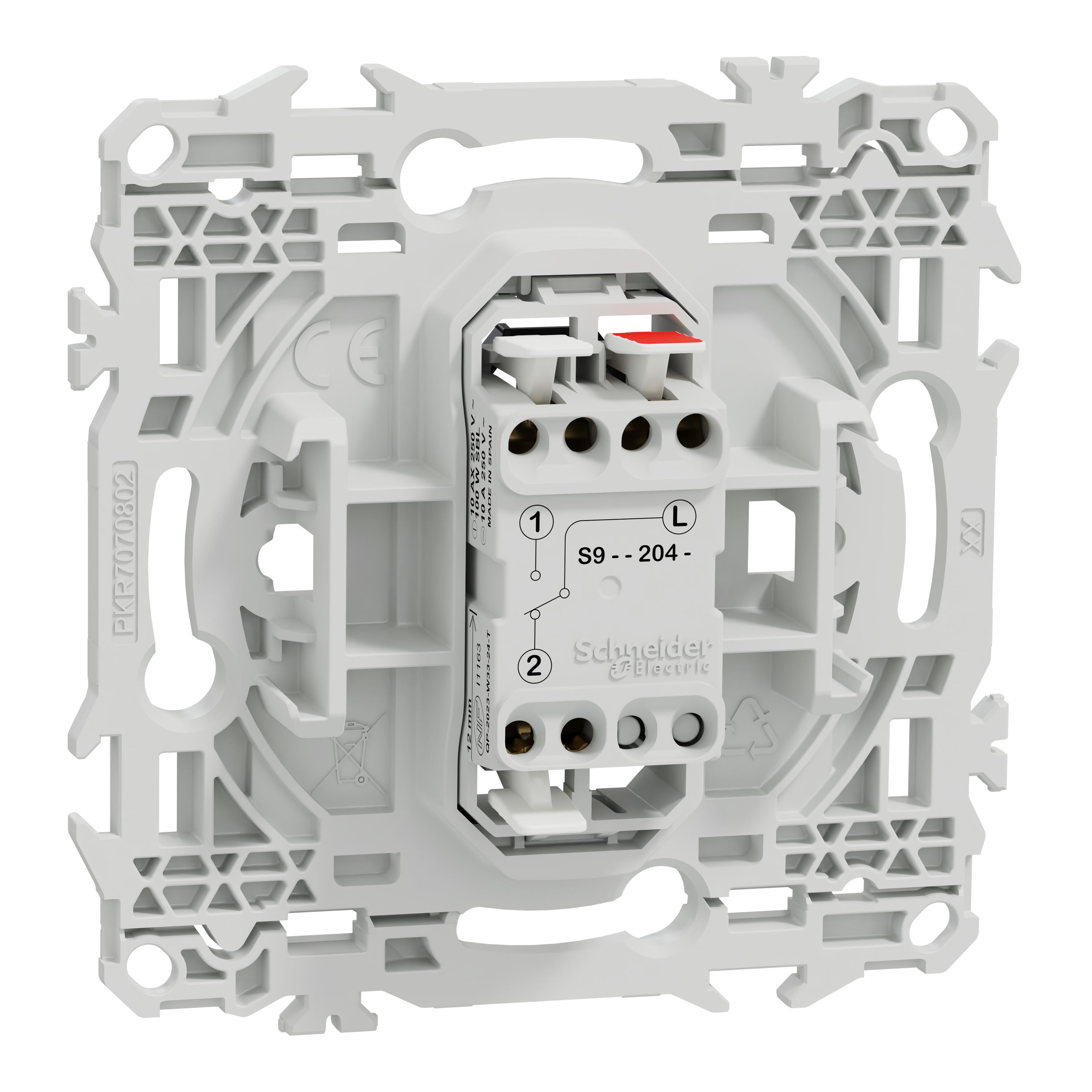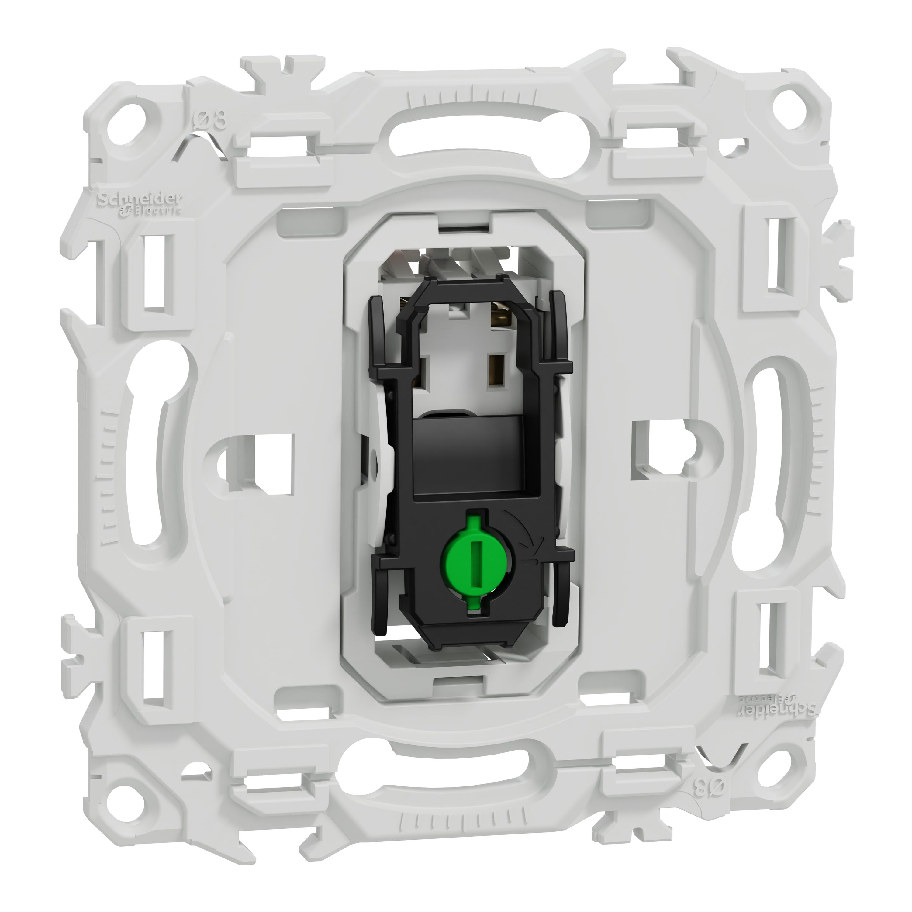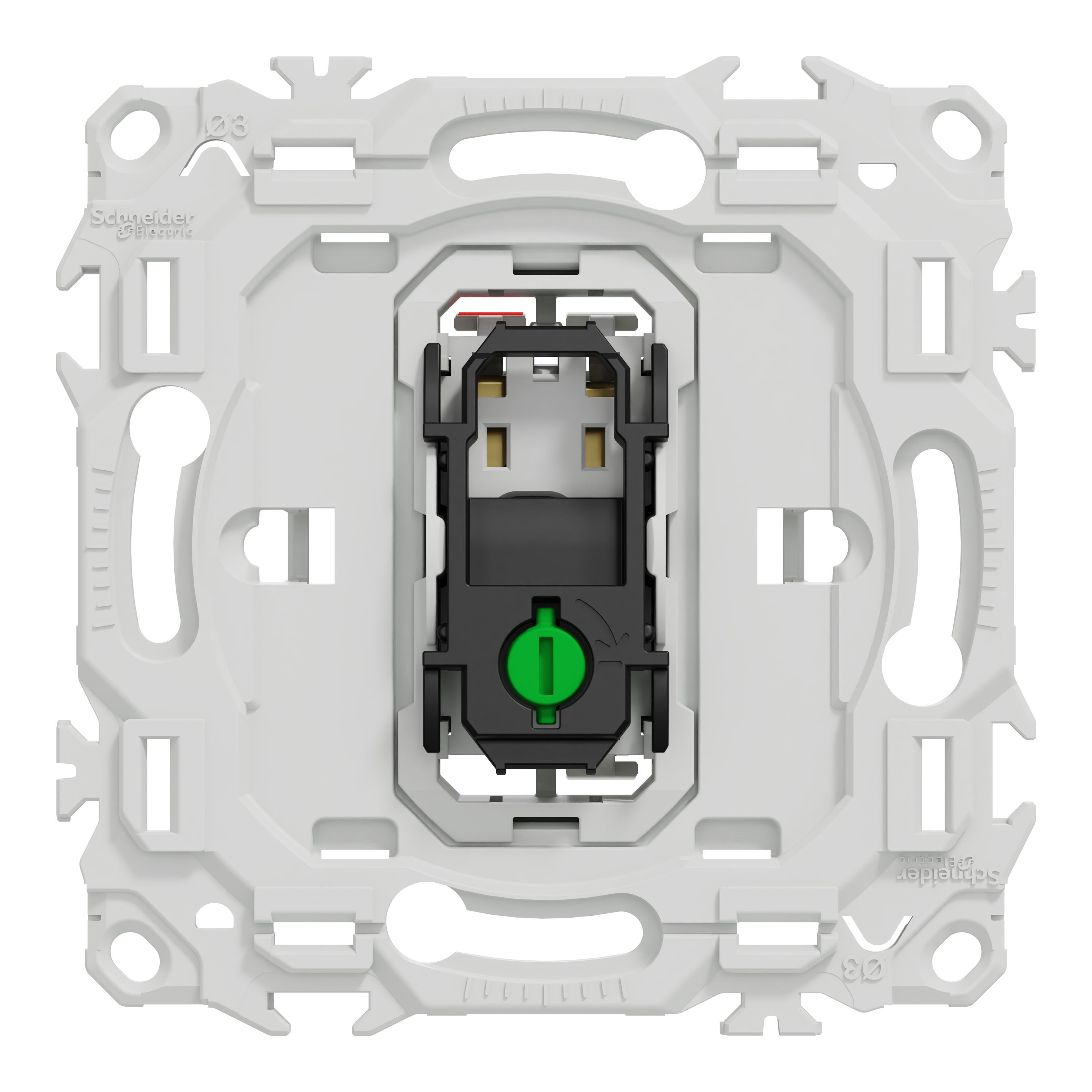 La fixation du mécanisme est facile et robuste sur tout type de boîte d'encastrement grâce à son support rigide à vis ou à griffes clipsables en option idéales pour la rénovation. Le produit dispose de 3 bornes automatiques jusqu'à 2 câbles de 1,5mm² rigides ou souples & multibrins pour chaque pôle, pour une installation plus rapide et fiable, réduisant le temps de montage et minimisant les risques d’erreur.