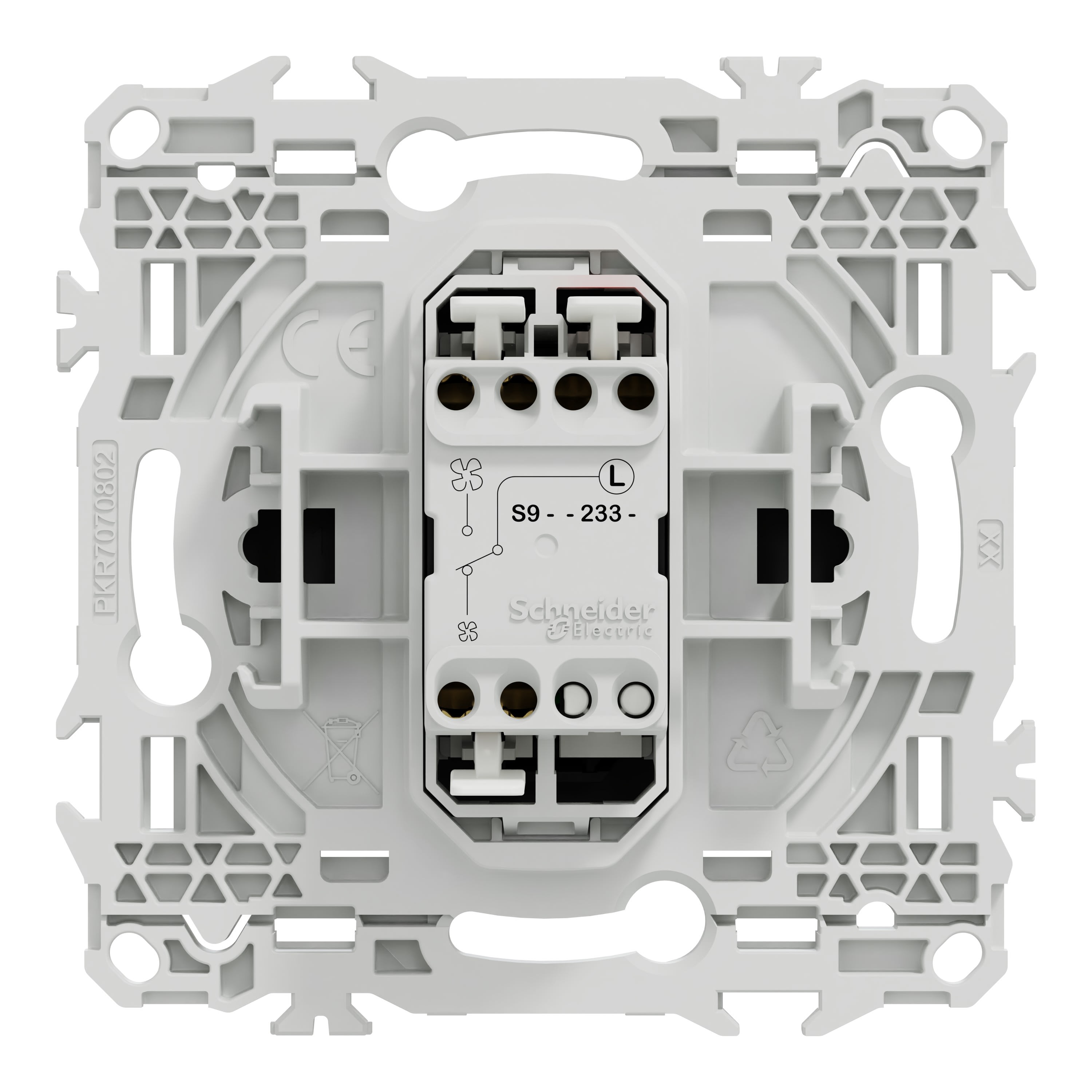 L'interrupteur ou poussoir VMC Odace permet de contrôler la vitesse du système de ventilation, avec deux positions distinctes : vitesse lente et rapide, pour une régulation efficace de l’air. Cet interrupteur ou poussoir propose une esthétique à bascule.