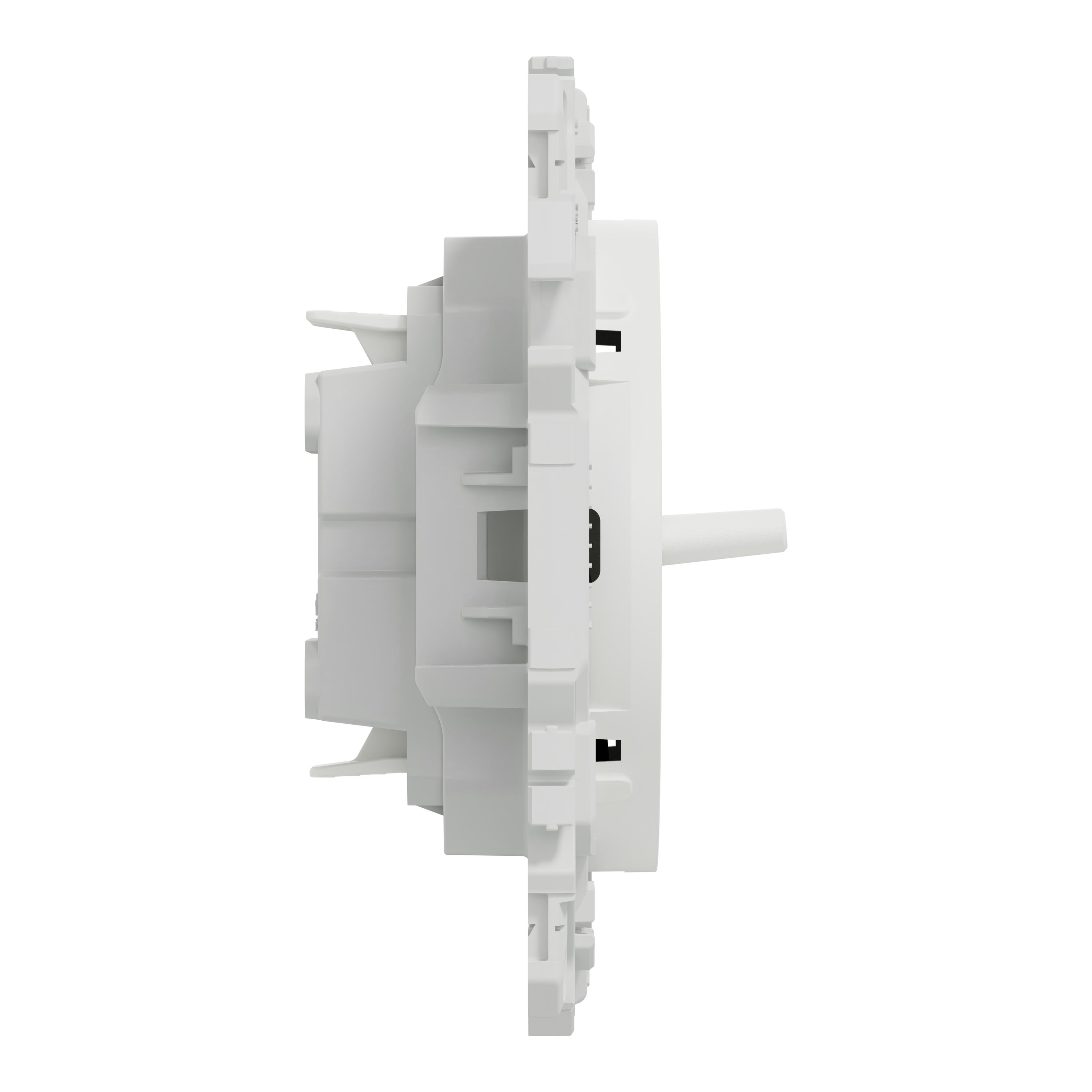 La fixation du mécanisme est facile et robuste sur tout type de boîte d'encastrement grâce à son support rigide à vis ou à griffes clipsables en option idéales pour la rénovation. Le produit dispose de 3 bornes automatiques jusqu'à 2 câbles de 1,5mm² rigides ou souples & multibrins pour chaque pôle, pour une installation plus rapide et fiable, réduisant le temps de montage et minimisant les risques d’erreur.