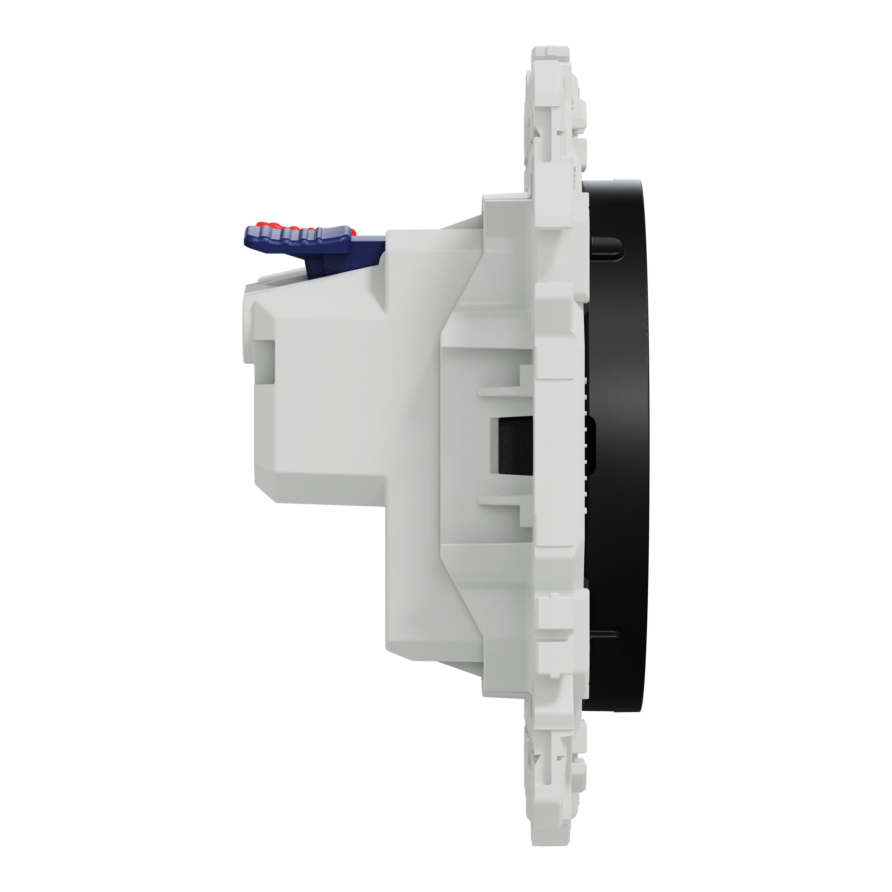 La fixation du mécanisme est facile et robuste sur tout type de boîte d'encastrement grâce à son support rigide à vis ou à griffes clipsables en option idéales pour la rénovation. Le produit dispose d'une connexion rapide et fiable sans outil grâce aux bornes automatiques sans vis jusqu'à 2 câbles de 2,5mm² rigides ou souples & multibrins pour chaque pôle.