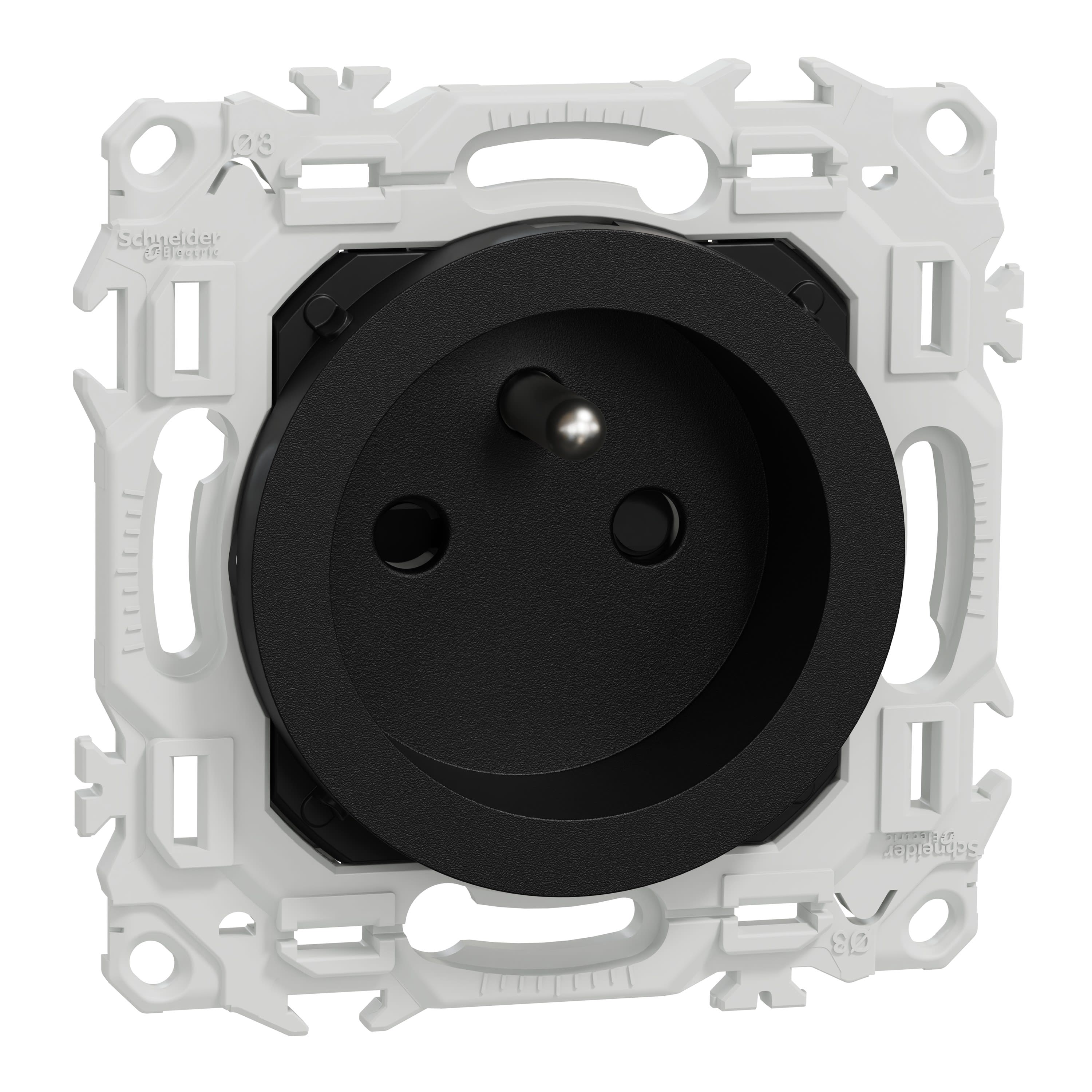 Schneider Electric - Odace - prise 2P+T rénovation à puits - 4 bornes auto par pôle - noir onyx - S940049