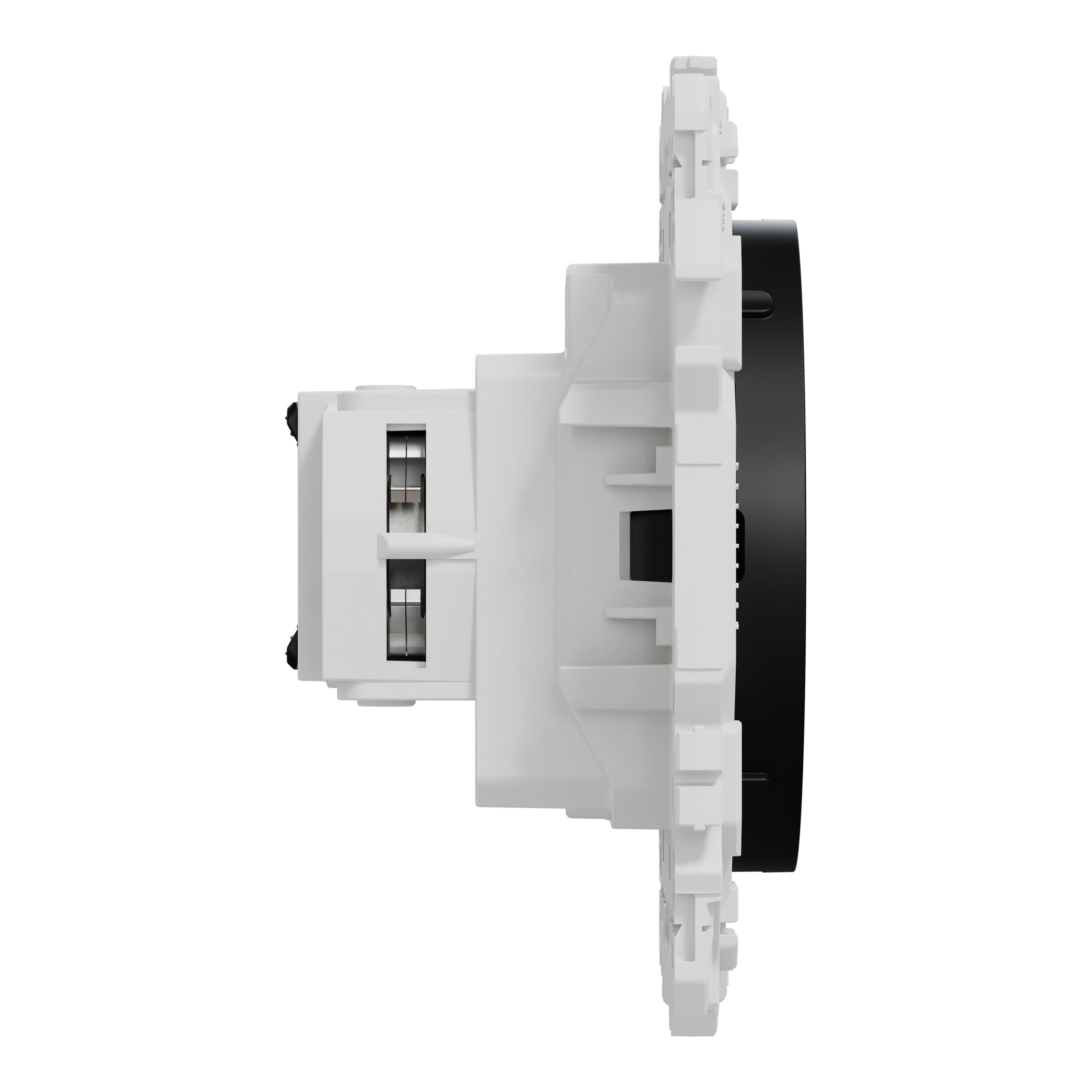 Des variantes existent en blanc et en noir. Plusieurs prises Odace sont disponibles pour répondre à toutes vos installations : affleurante, spéciale rénovation, avec chargeur USB C jusqu'à 65W, précâblée, connectée Wiser. Une version de prise affleurante sans enjoliveur est également disponible pour offrir la possibilité de choisir la couleur de l'enjoliveur au dernier moment sur le chantier.