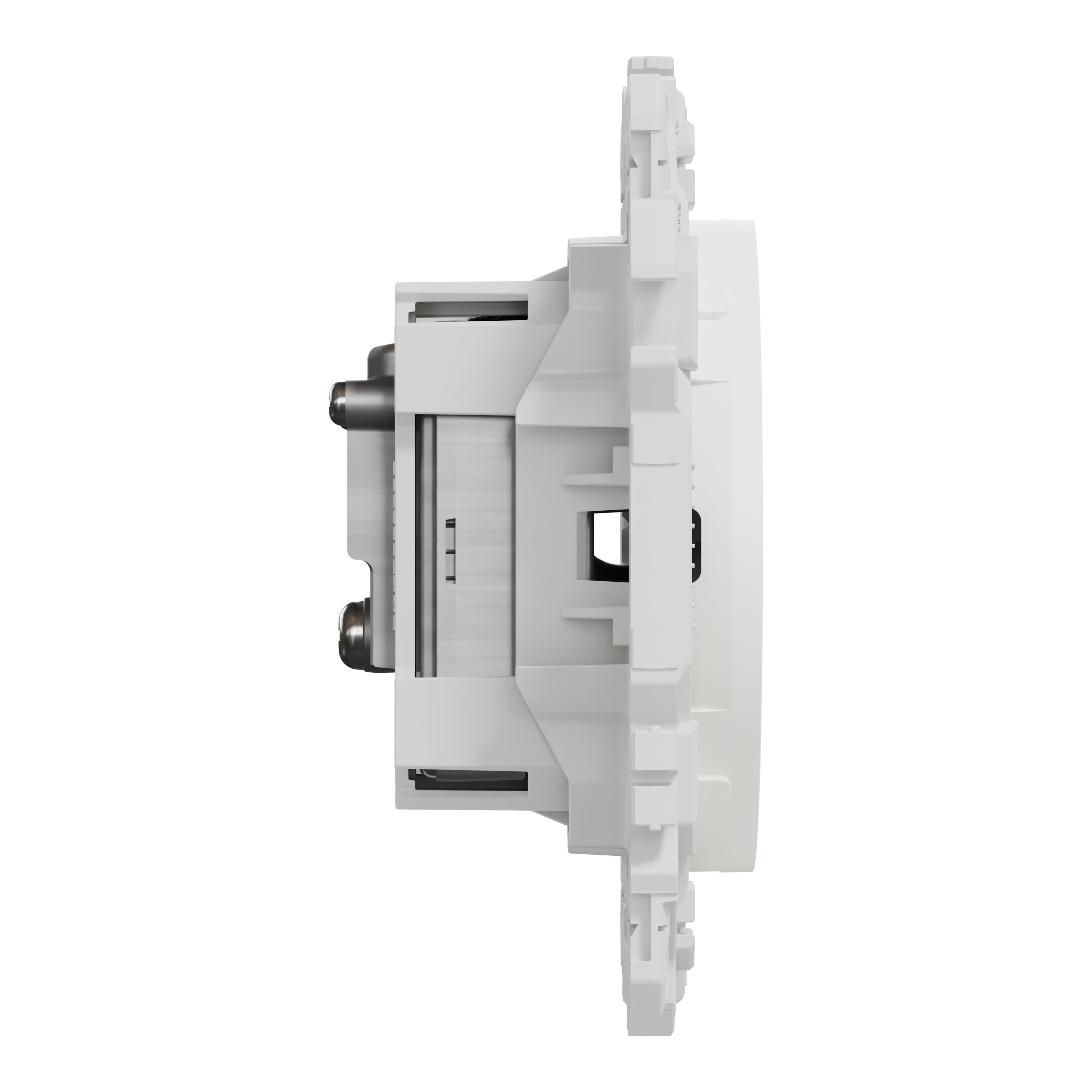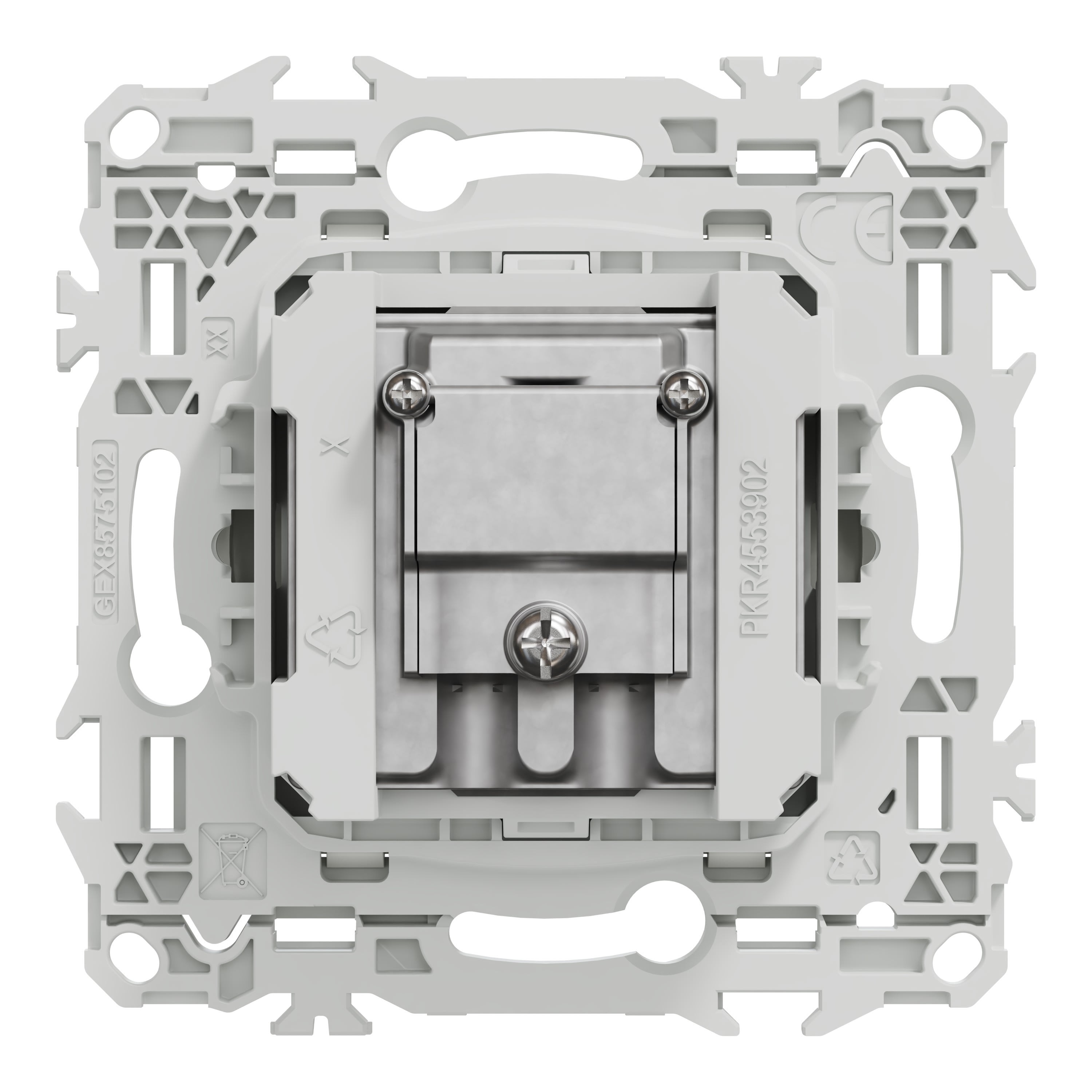 La fixation du mécanisme est facile et robuste sur tout type de boîte d'encastrement grâce à son support rigide à vis ou à griffes clipsables en option idéales pour la rénovation.