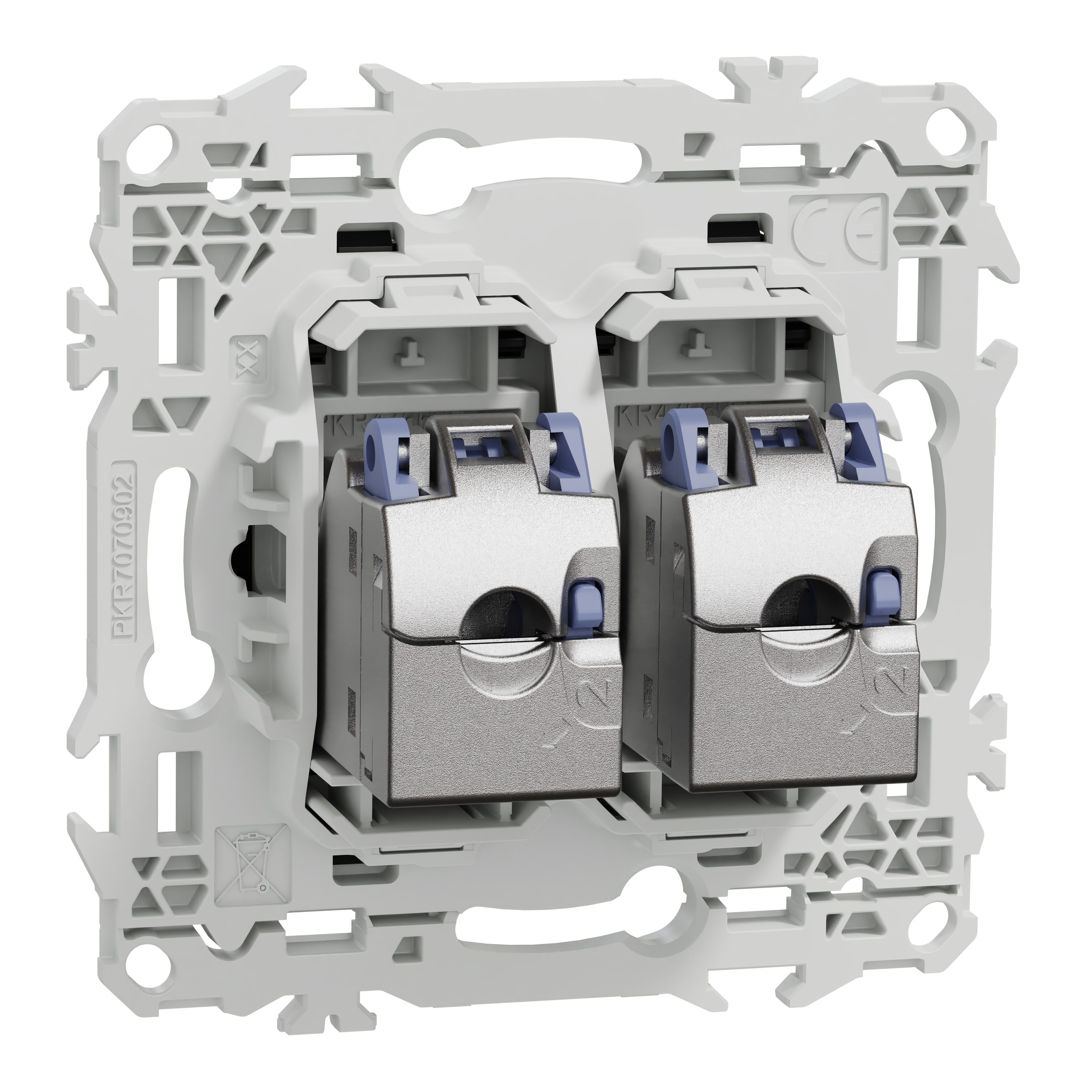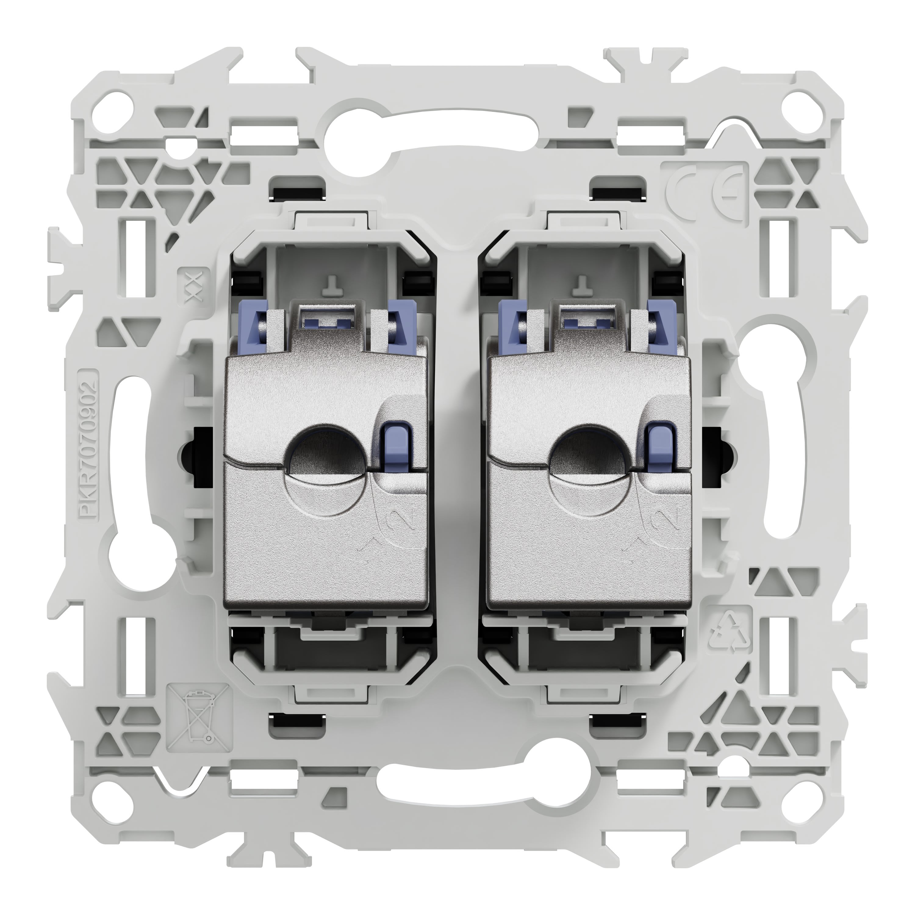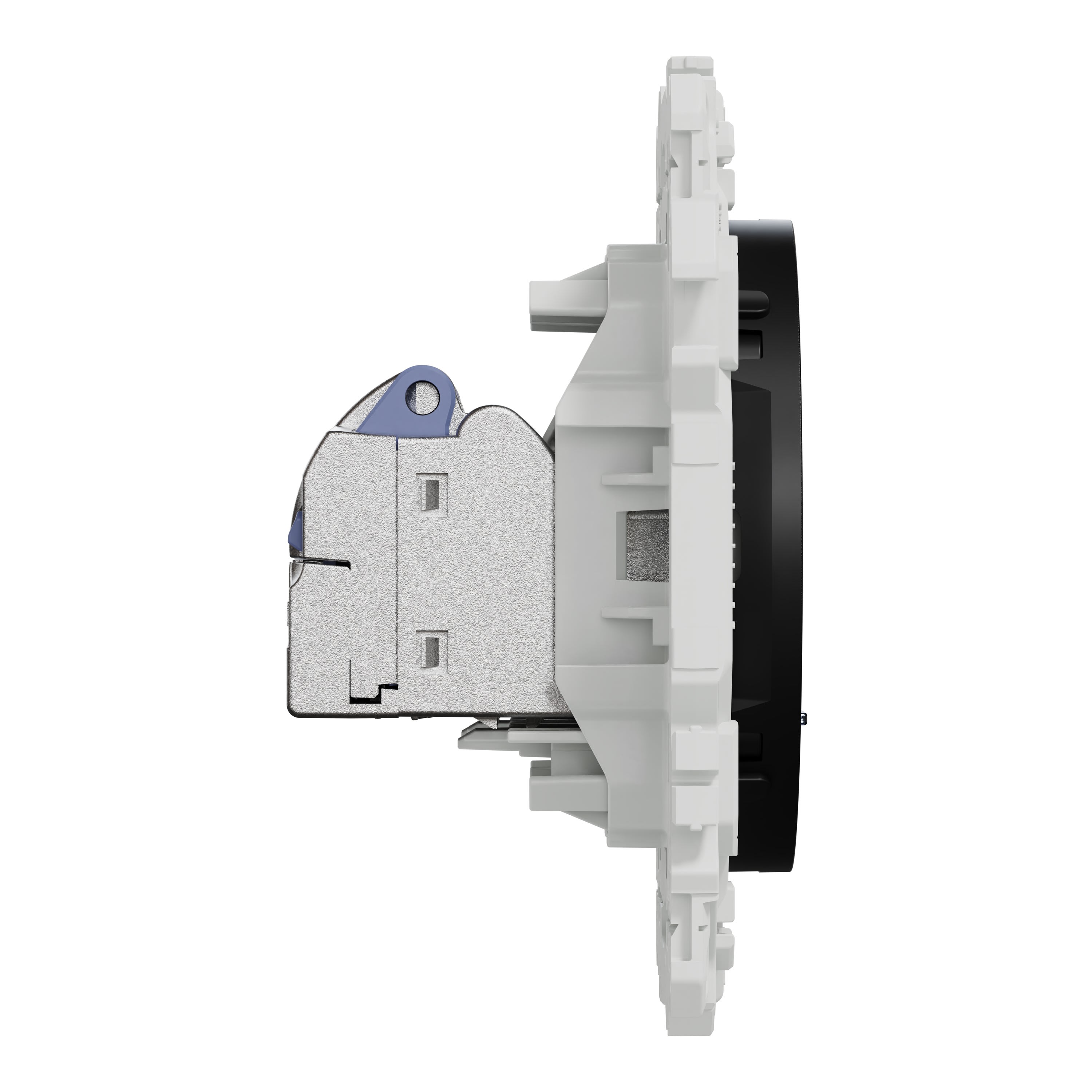 La fixation du mécanisme est facile et robuste sur tout type de boîte d'encastrement grâce à son support rigide à vis. Le connecteur S-One en 1 seule pièce permet un montage et démontage facile du câble RJ45.
