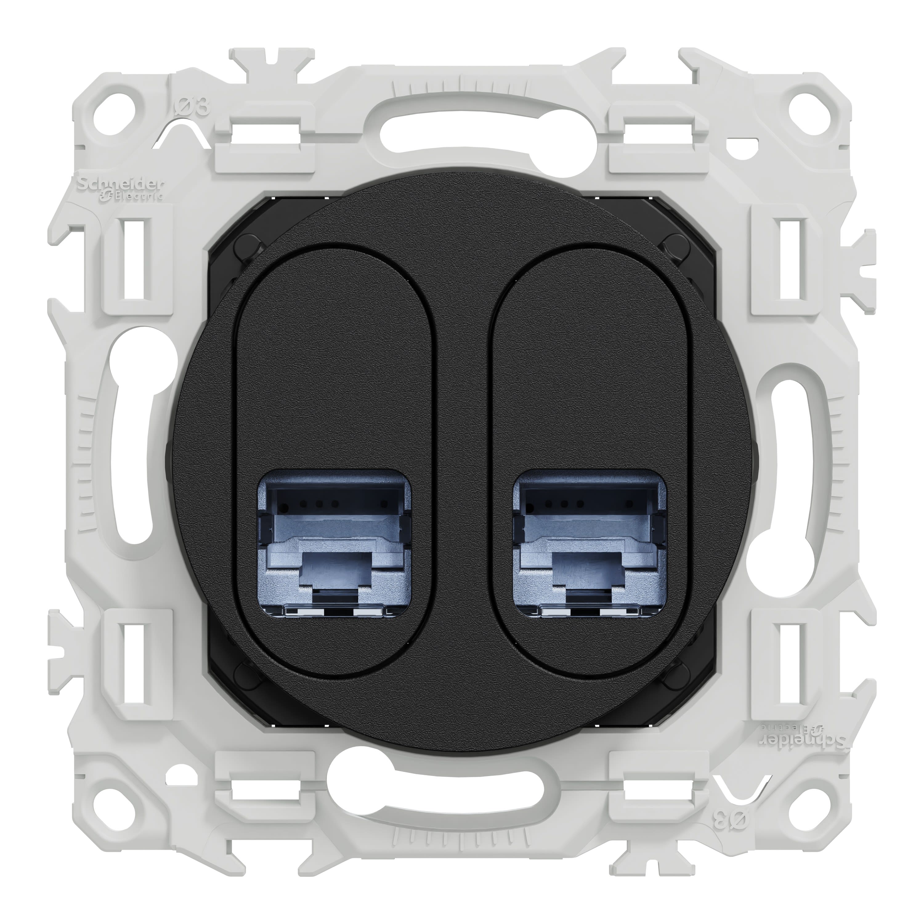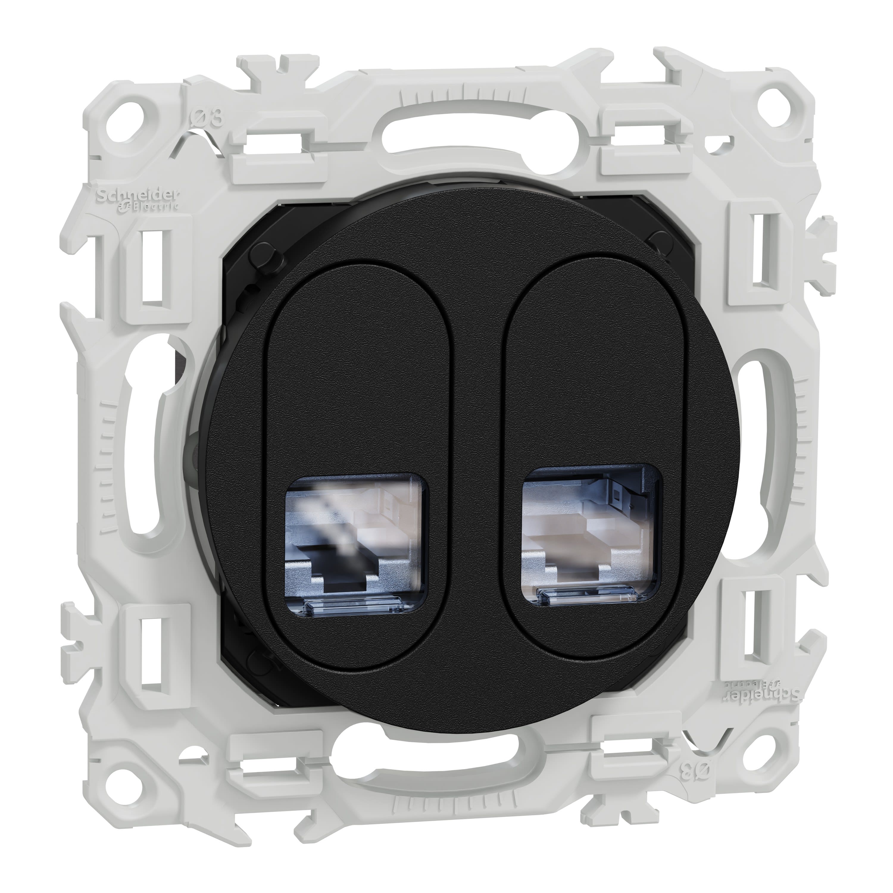 Schneider Electric - Odace - prise double RJ45 - Cat6 STP grade 2TV min à grade 3TV - noir onyx - S940486
