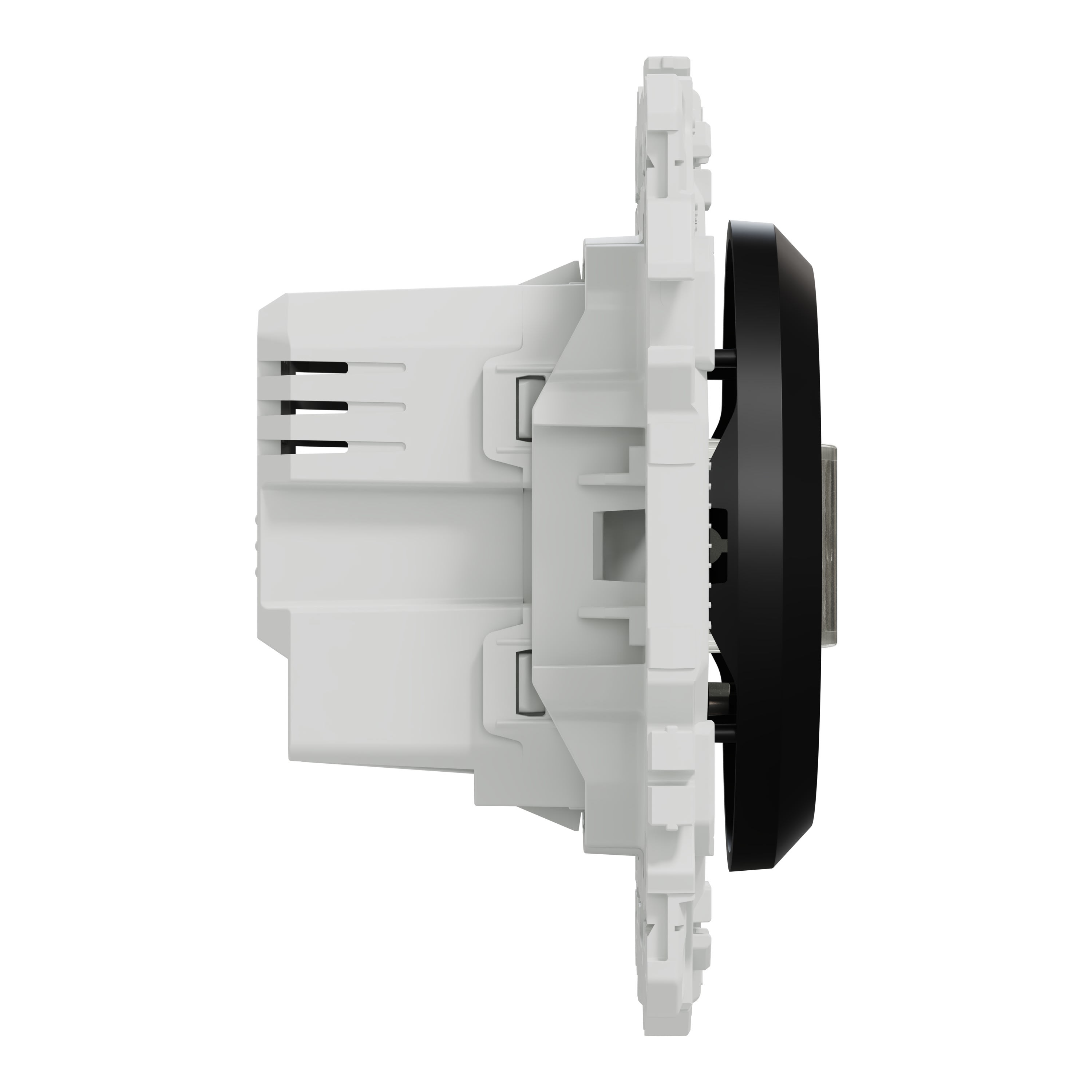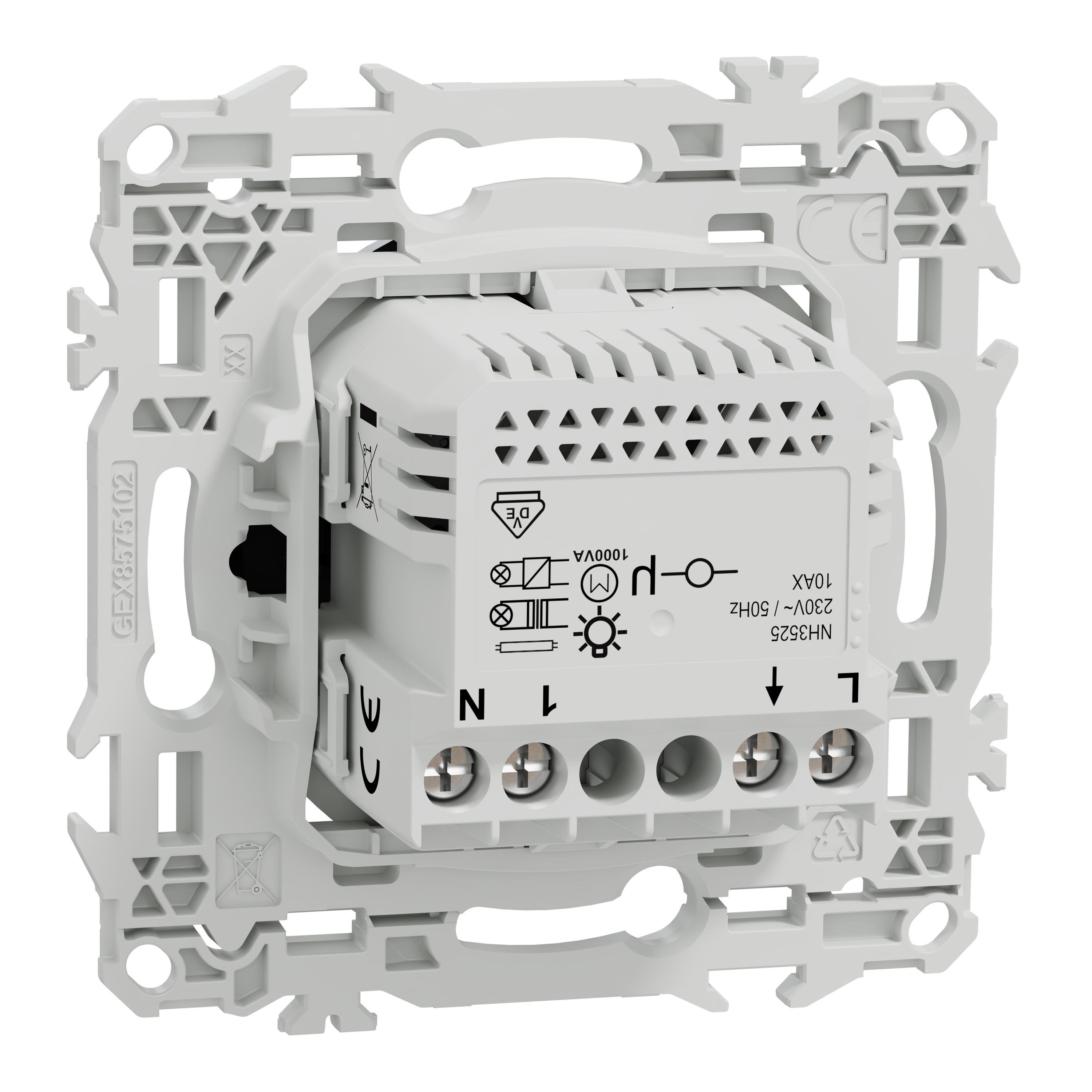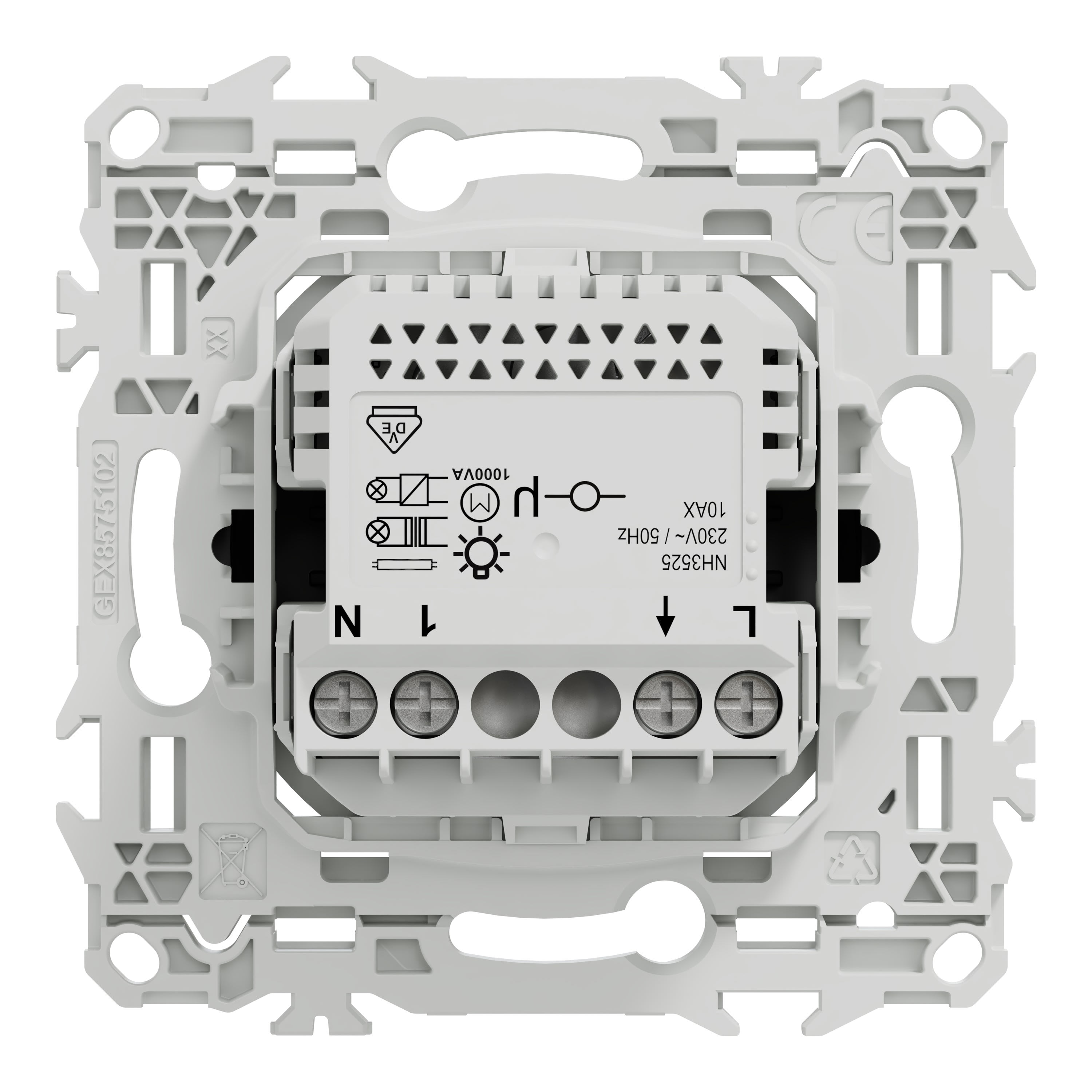 Il est compatible avec toutes les charges et nécessite un câblage à 3 fils dont le neutre pour une installation stable et sécurisée. La fixation du mécanisme est facile et robuste sur tout type de boîtes d'encastrement grâce à son support rigide à vis ou à griffes clipsables en option idéales pour la rénovation.