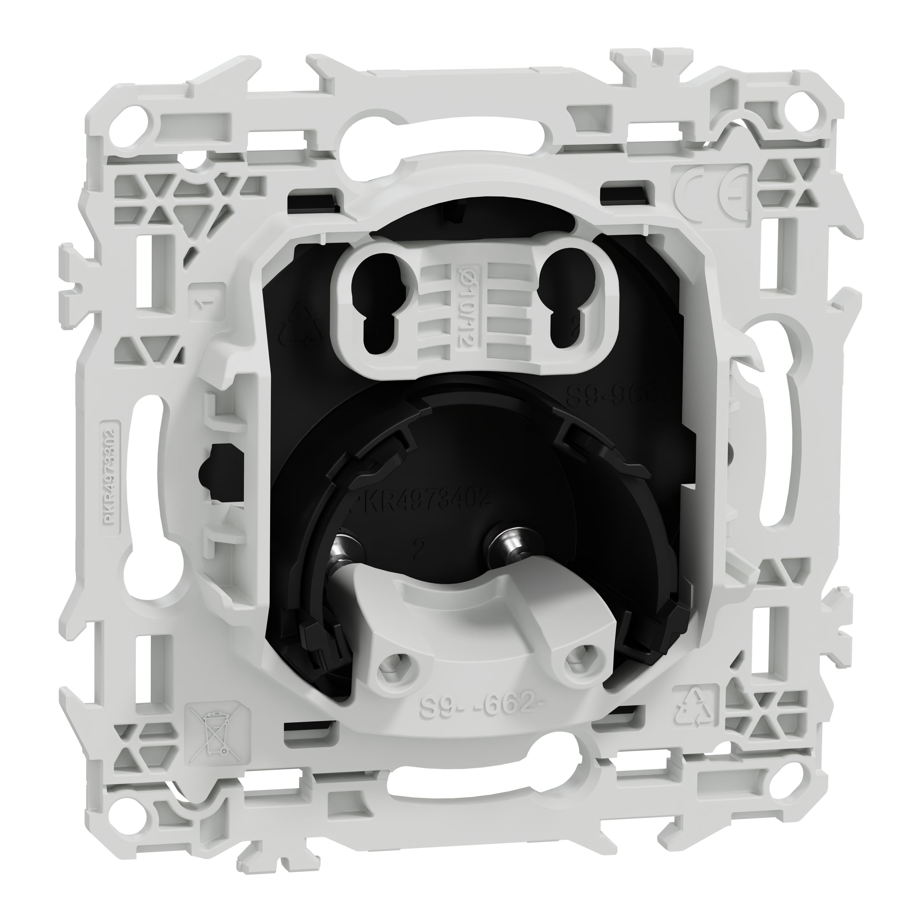 Son serrage est flexible, grâce à une partie mobile permettant d’ajuster l’esthétique de la sortie de câble en fonction des dimensions du câble. La fixation du mécanisme est facile et robuste sur tout type de boîte d'encastrement grâce à son support rigide à vis ou à griffes clipsables en option idéales pour la rénovation.