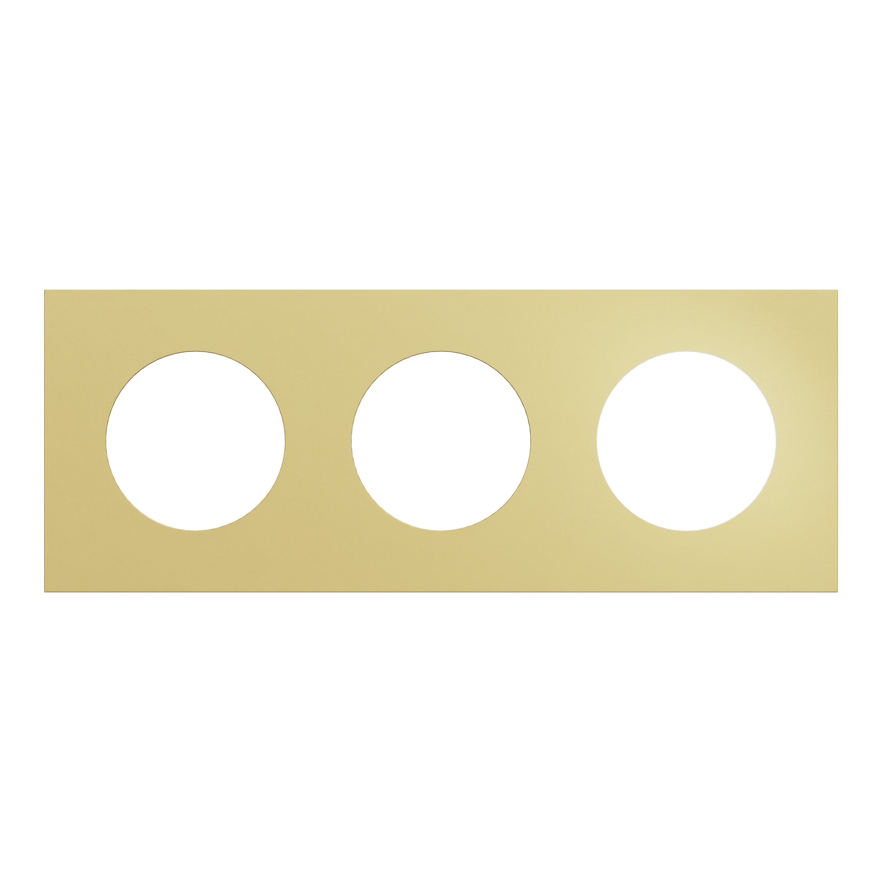 La plaque 3 postes Odace Métal effet Laiton, avec support blanc, est à associer à un mécanisme Odace nouvelle génération.