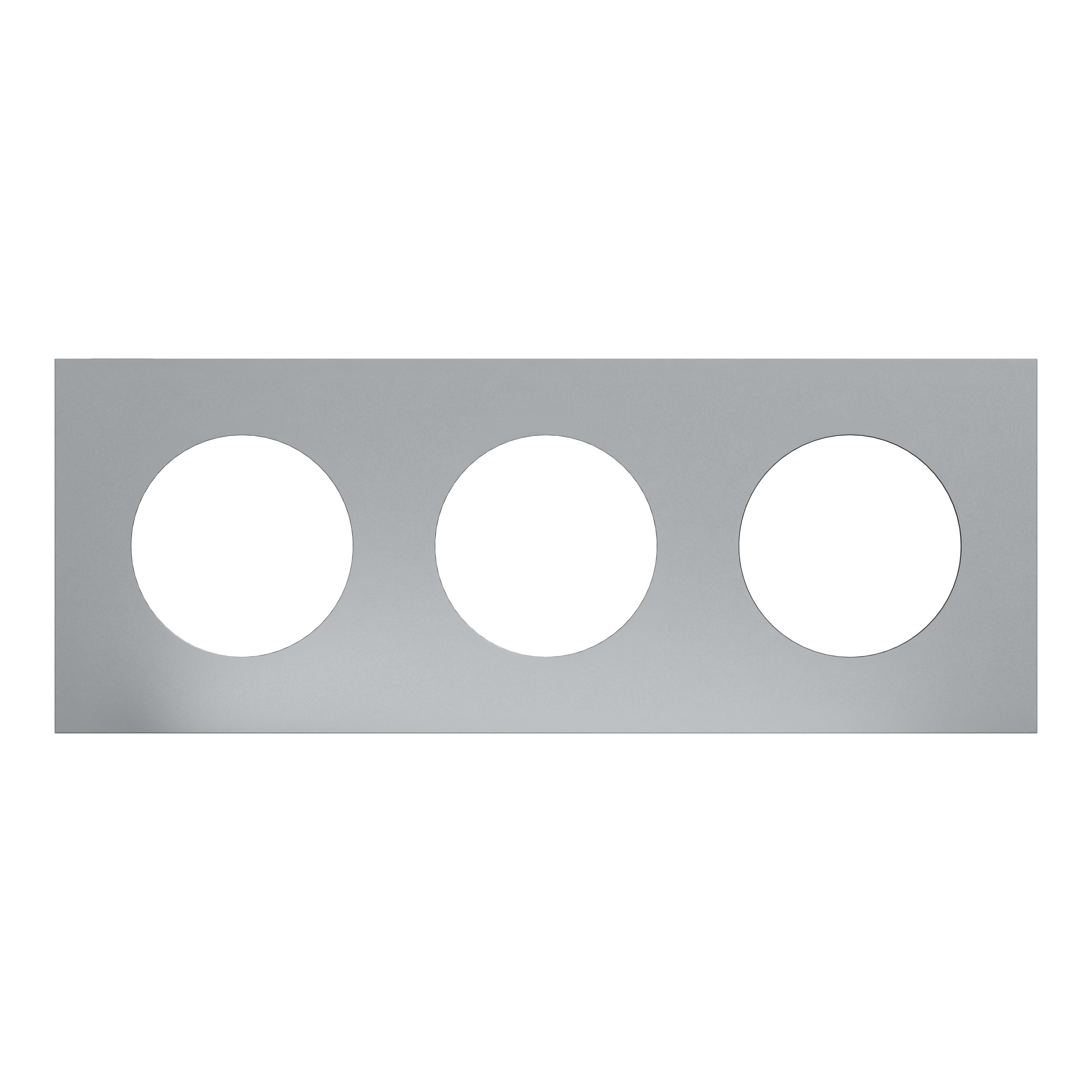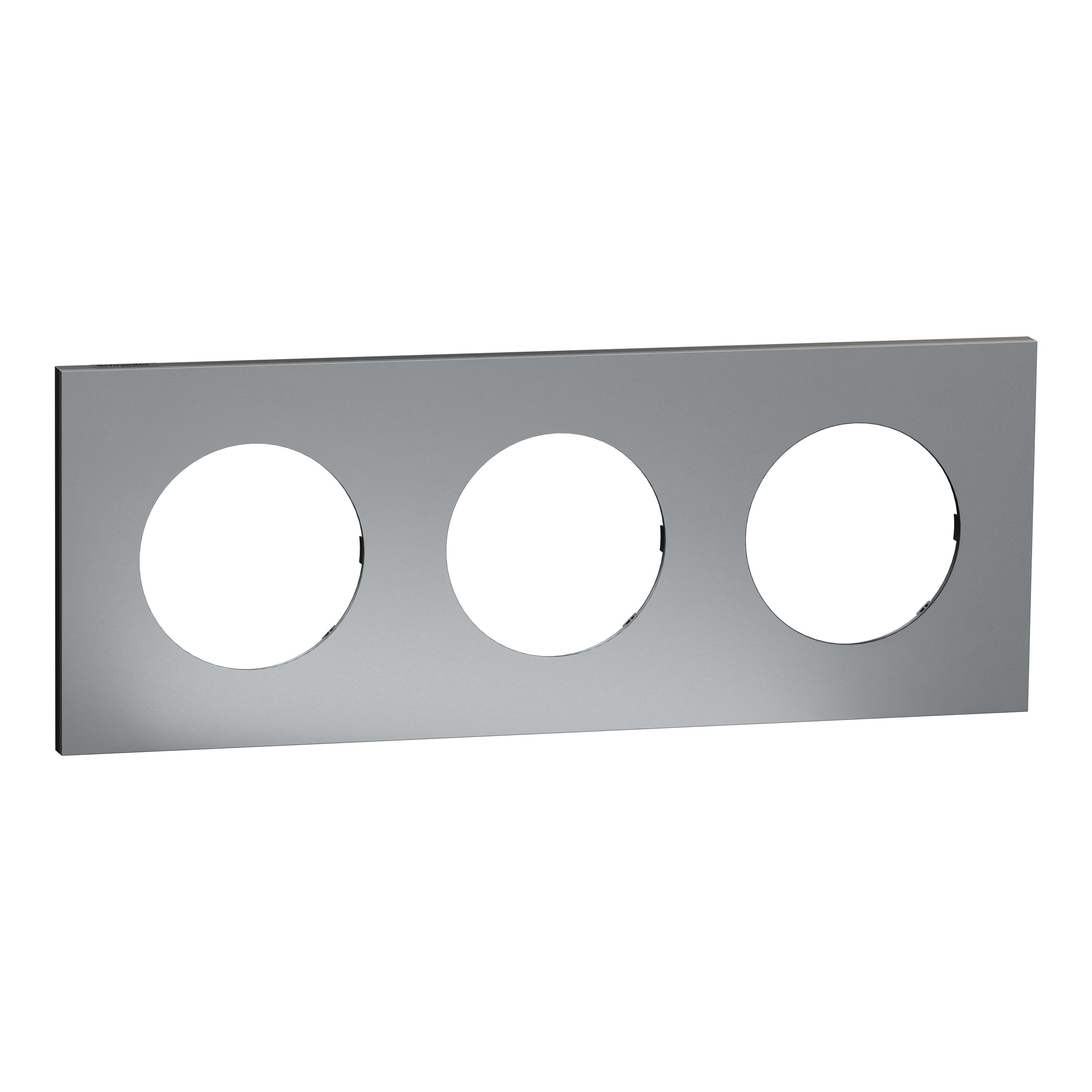 La plaque 3 postes Odace Métal effet Titane, avec support noir, est à associer à un mécanisme Odace nouvelle génération.