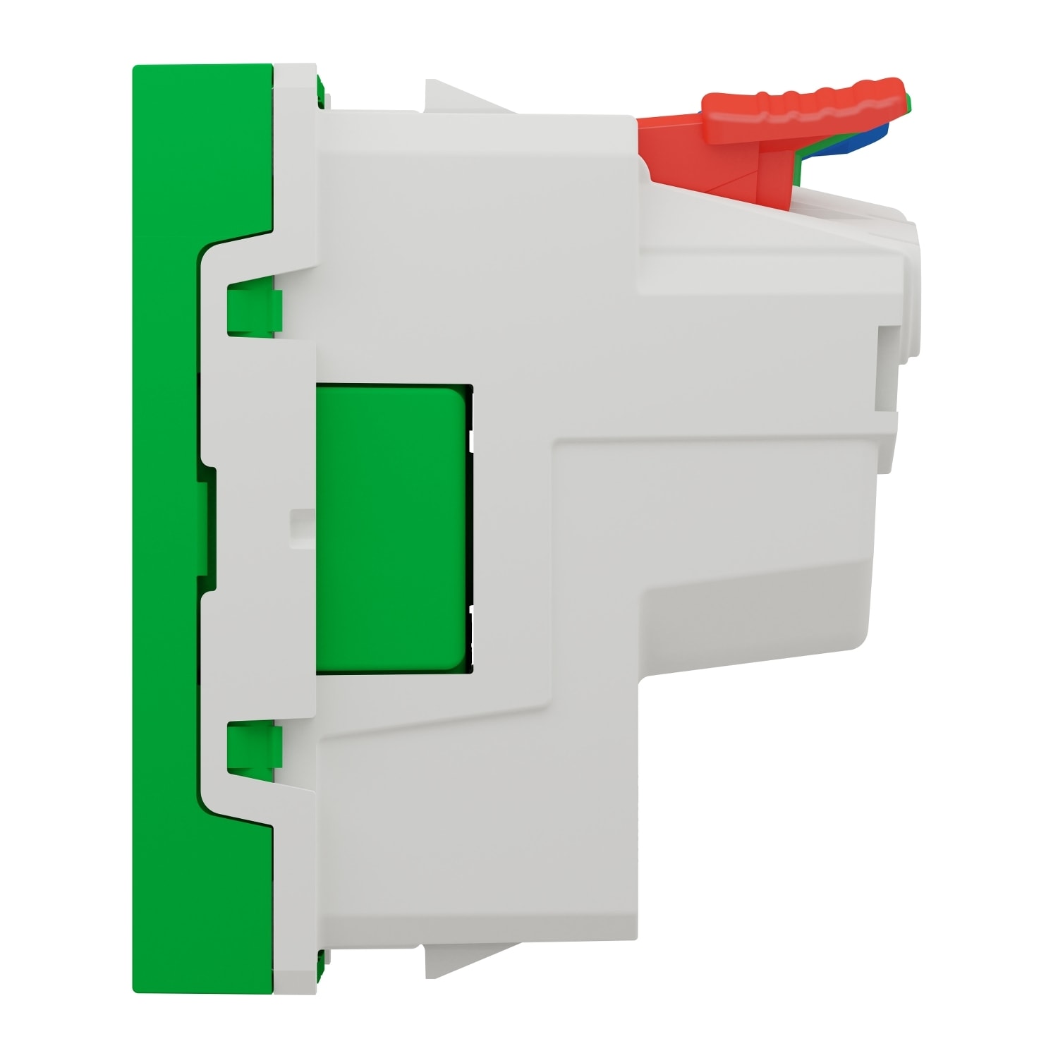 Schneider Electric - Unica - prise 2P+T - FR - 90° - raccord rapide traversant - Vert - méca seul - NU305906
