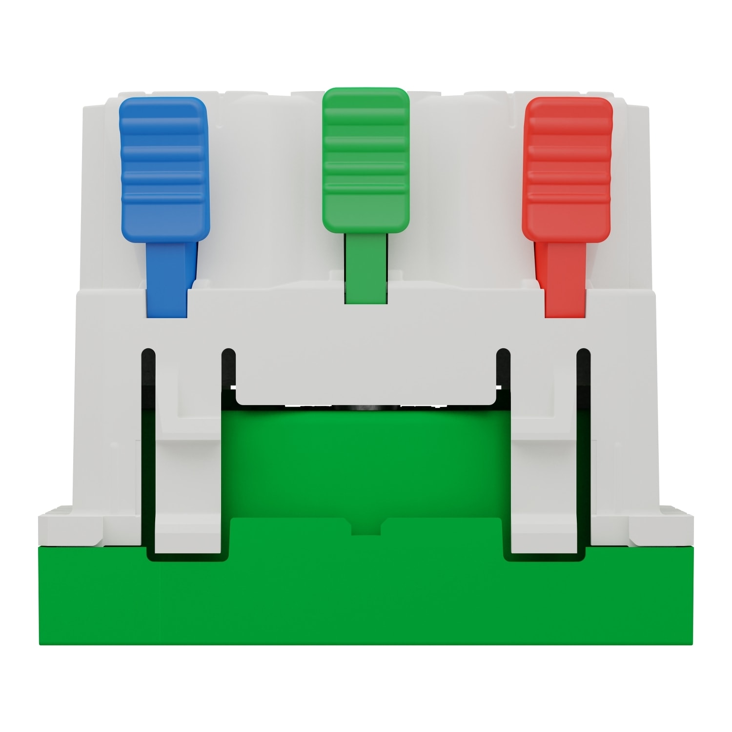 L'encombrement réduit du mécanisme apporte plus de confort et de rapidité à l'installation. La couleur des poussoirs de déconnexion permet une identification rapide du câblage. Les bornes automatiques permettent une connexion rapide et sans outil.