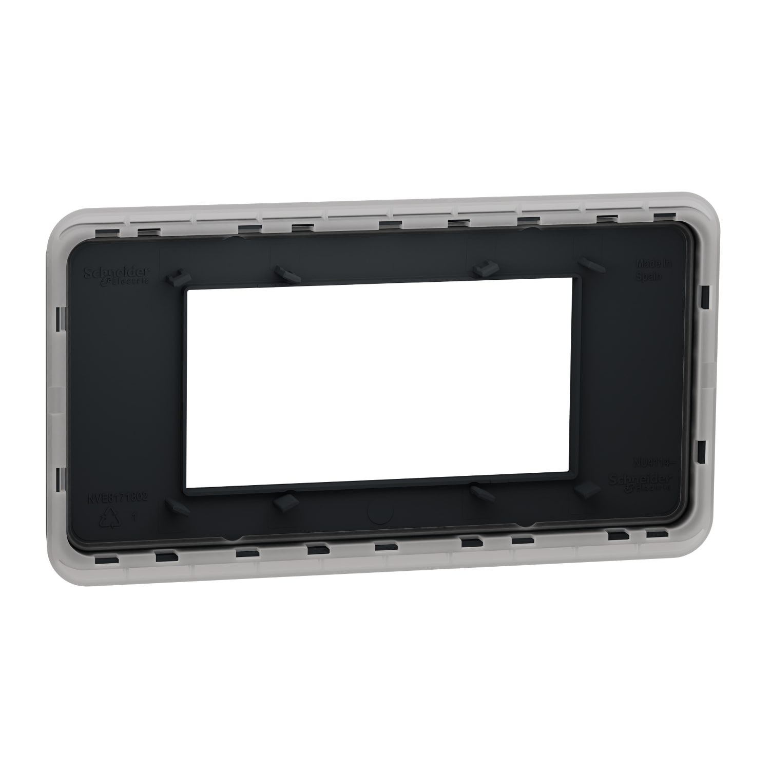 NU411454 se compose d'une plaque 4 modules de couleur anthracite. Il sera à associer et à clipser sur un support de fixation (commençant par NU700) qui maintient le mécanisme ou la fonction Unica (prise, interrupteur, ...).