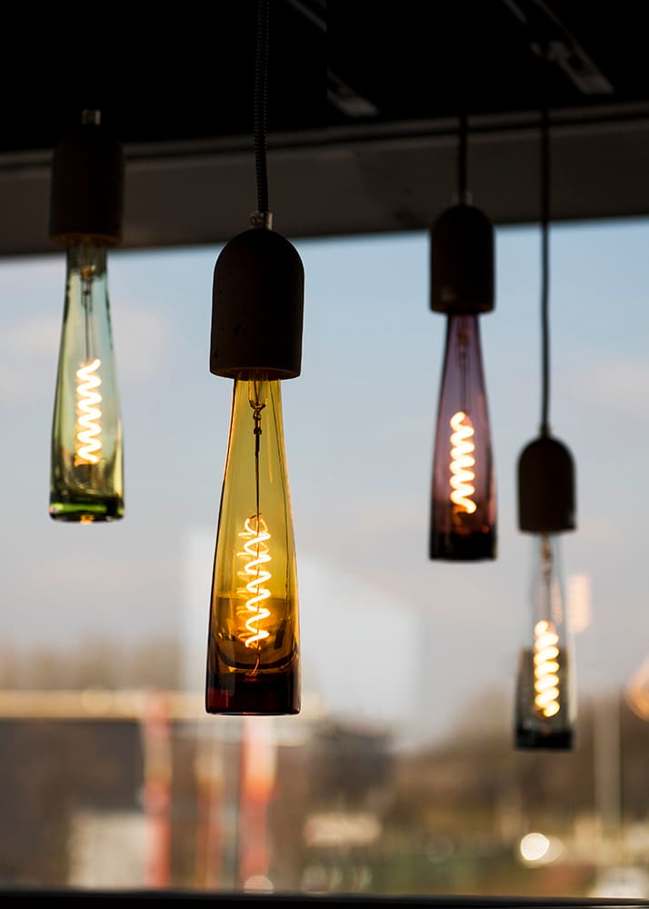 La série Spiraled Bottled combine les qualités uniques de la technique du filament spiralé avec la forme unique de la bouteille. Les différentes couleurs du verre renforcent le caractère unique des lampes. Tout comme la série Spiraled originale, ces