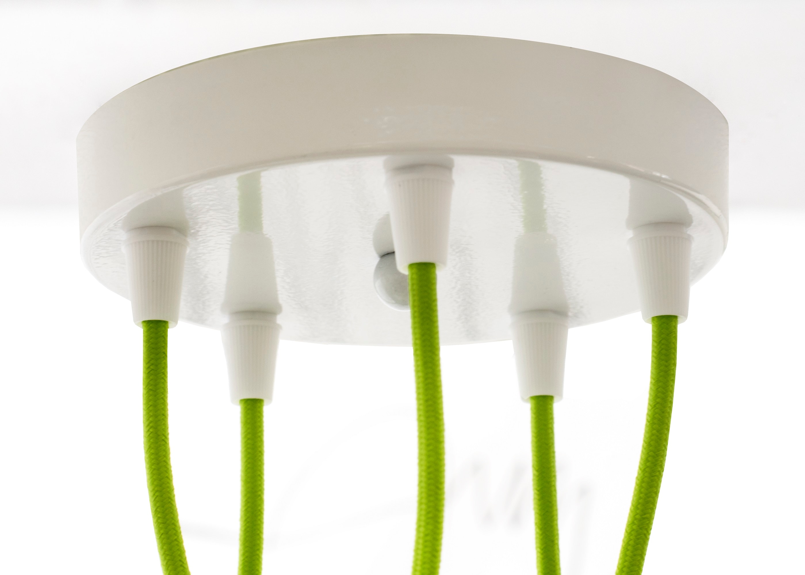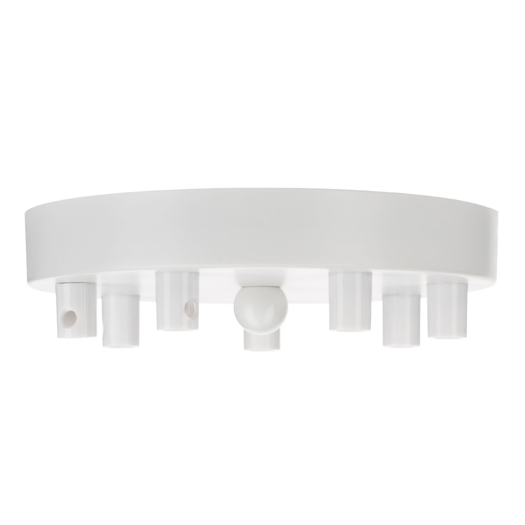 BAI Rosace en Métal Blanc 150x25mm Rosace multiple pour 7 câbles avec serre-câbles blanc - à combiner avec câble textile et douilles pour créer suspension décorative type "toile d'araignée"
