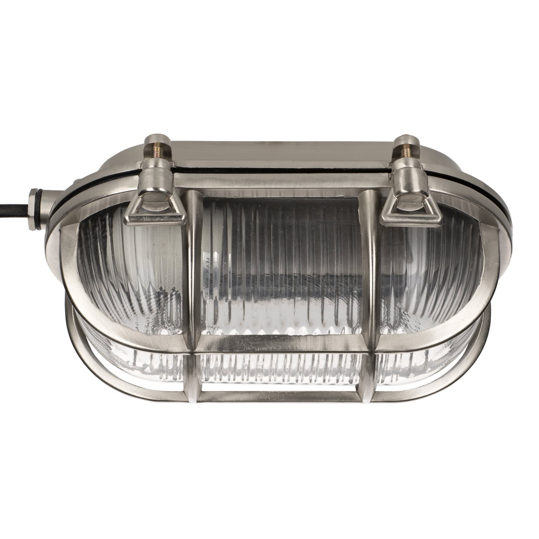 BAI Hublot AHOI E27 Alu Nickel Ovale IP64 Extérieur Classe 1 Max 60W Pré-câblé 50cm 3x0.75mm Bulkhead Applique murale Nautique Bateau Marine Déco
