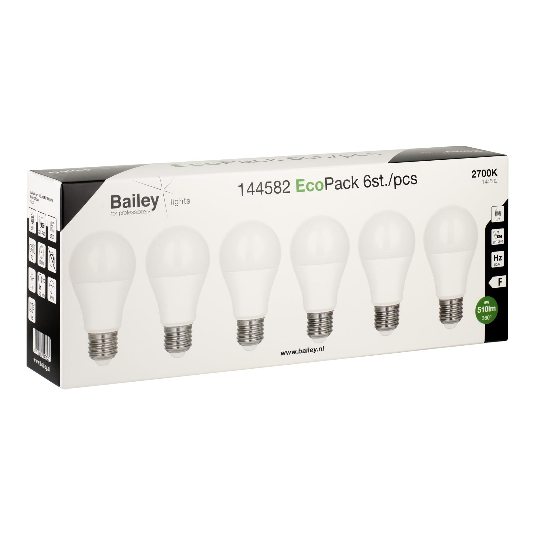 Bailey - EcoPack 6pcs Ecobasic LED Standard A60 E27 6W 2700K Opale 510lm (44W) 230V - 144582
