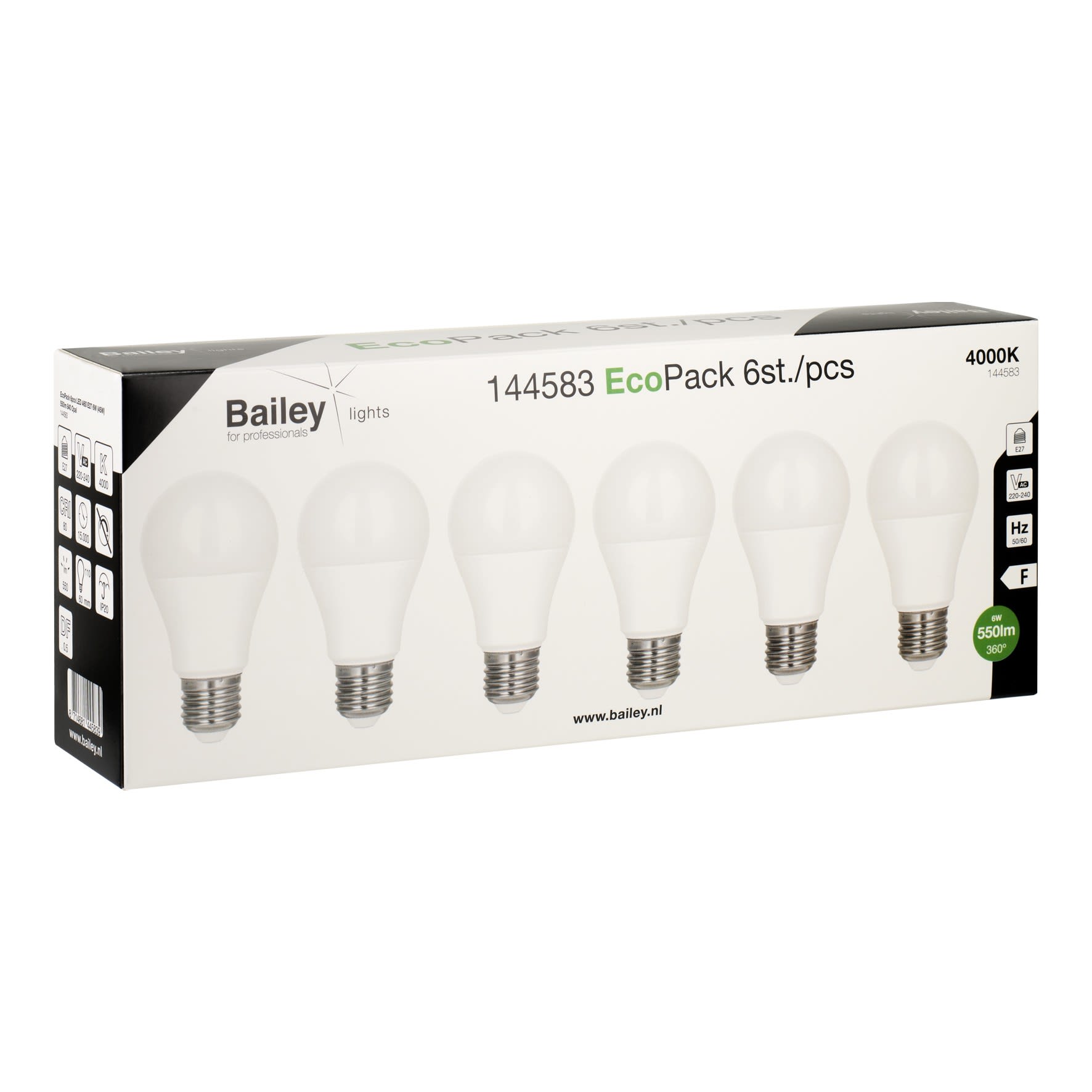 Bailey - EcoPack 6pcs Ecobasic LED Standard A60 E27 6W 4000K Opale 550lm (45W) 230V - 144583