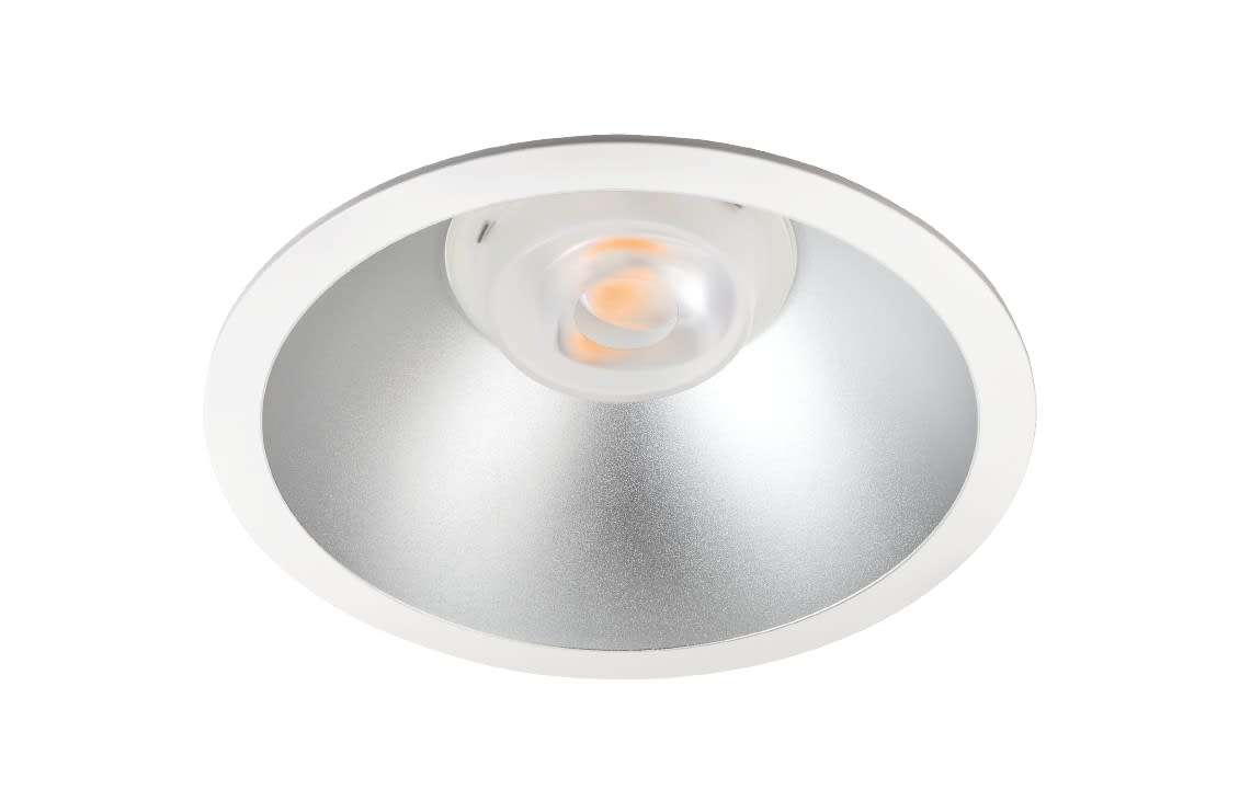 Downlight asymétrique idéal pour éclairer les murs dans les couloirs et bureaux, la lentille asymétrique permet un motif de lumière conique sur le mur