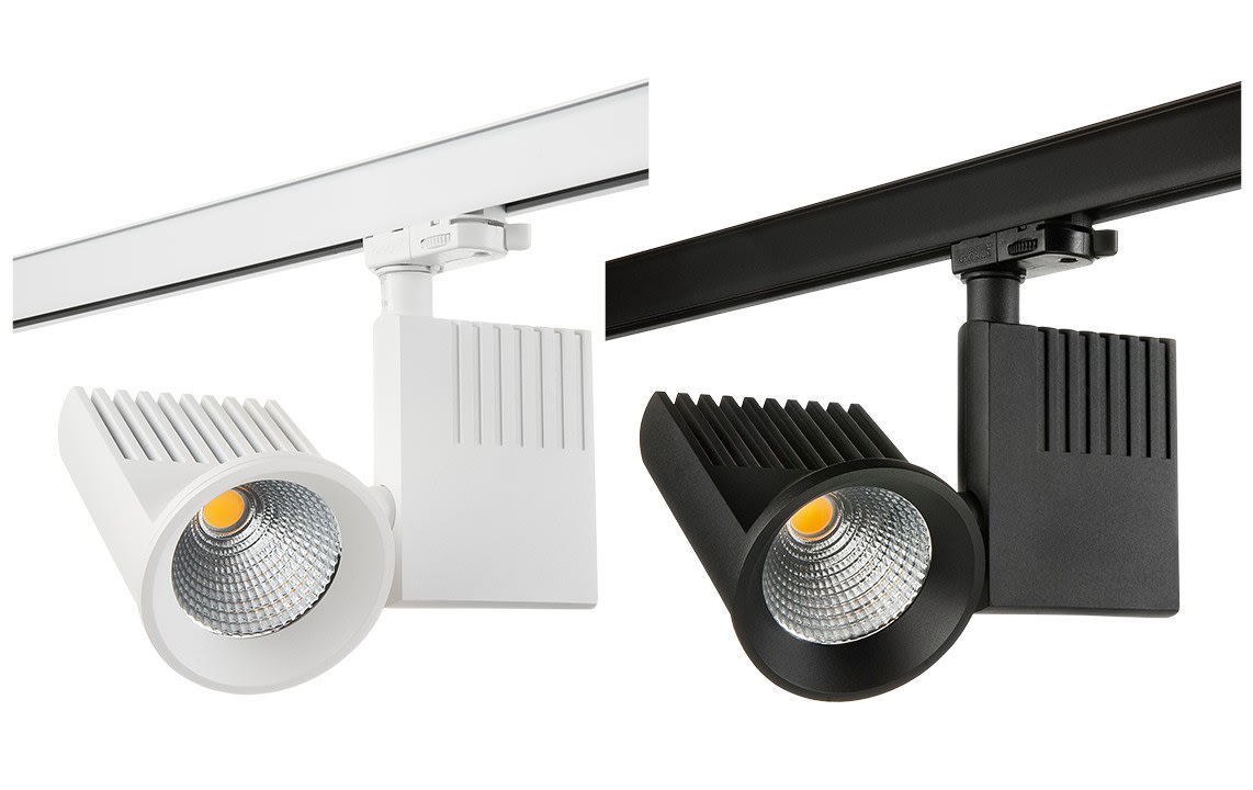 Spot sur rail 3 phases avec puissant module LED intégré et driver. Muni d’un multi adaptateur Global qui convient