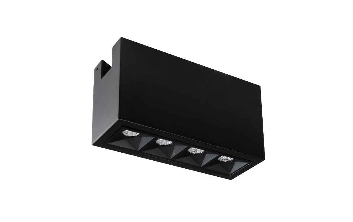 Zip Inspire 150 noir luminaire en saillie à fixer sur rail 1 allumage LED 8W 2700K coupure de phase descendante 450 lumens 56 lumens/W IRC 98 SDCM 2 durée de vie : L90/B10>100 000 heures faisceau 55° matériau : aluminium classe I IP20