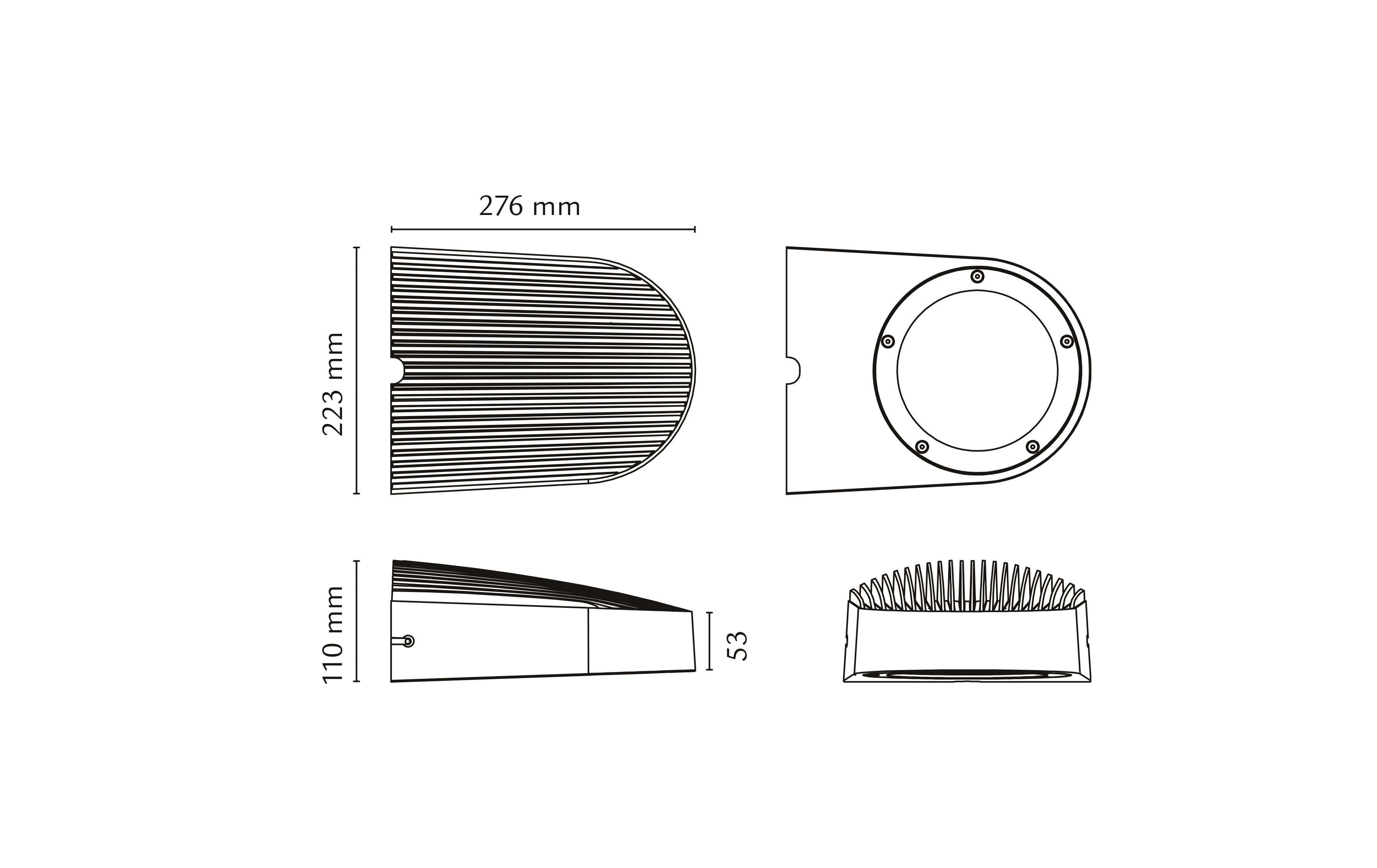 Fevik est un luminaire LED moderne au profil élancé avec une large diffusion de la lumière, prévu pour un montage sur mât ou en applique