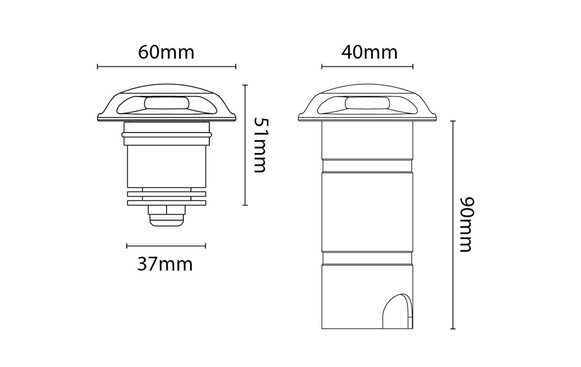 Livré avec câble de 1 mètre, garantie 10 ans anticorrosion, fourni avec tube pour encastrement au sol et une attache pour montage mural