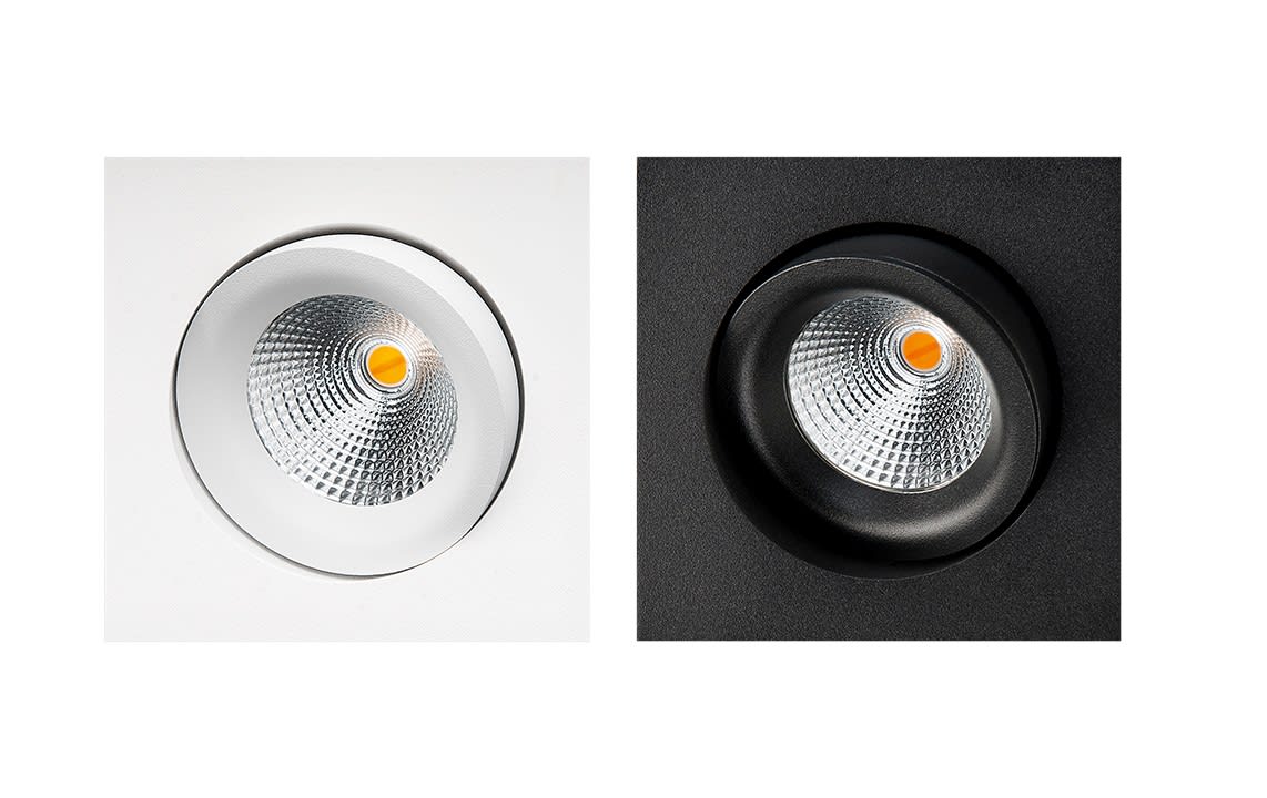 Luminaire carré Inclinable à 30 degrés, gyroscopique sur 360 degrés avec module LED DTW 2000-2800K, montage direct dans l'isolant déroulé