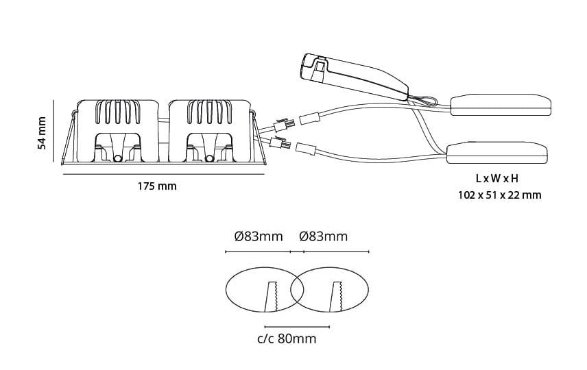 SG Lighting - Junistar Square Isosafe DTW downlight double noir 1120lm Ra>95 coupure de phase - 901263